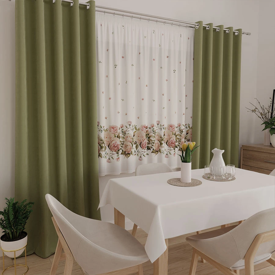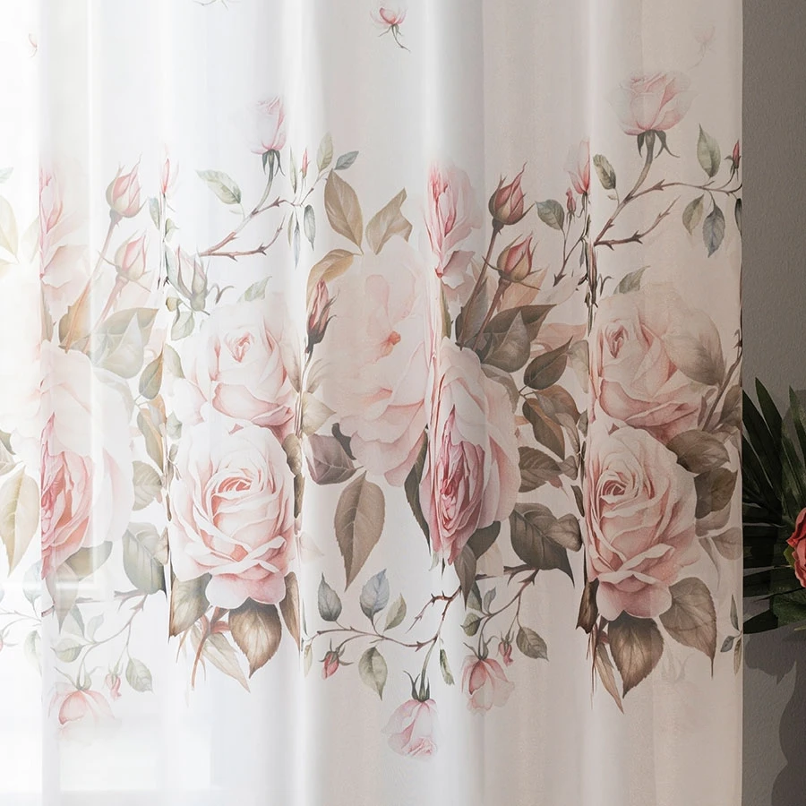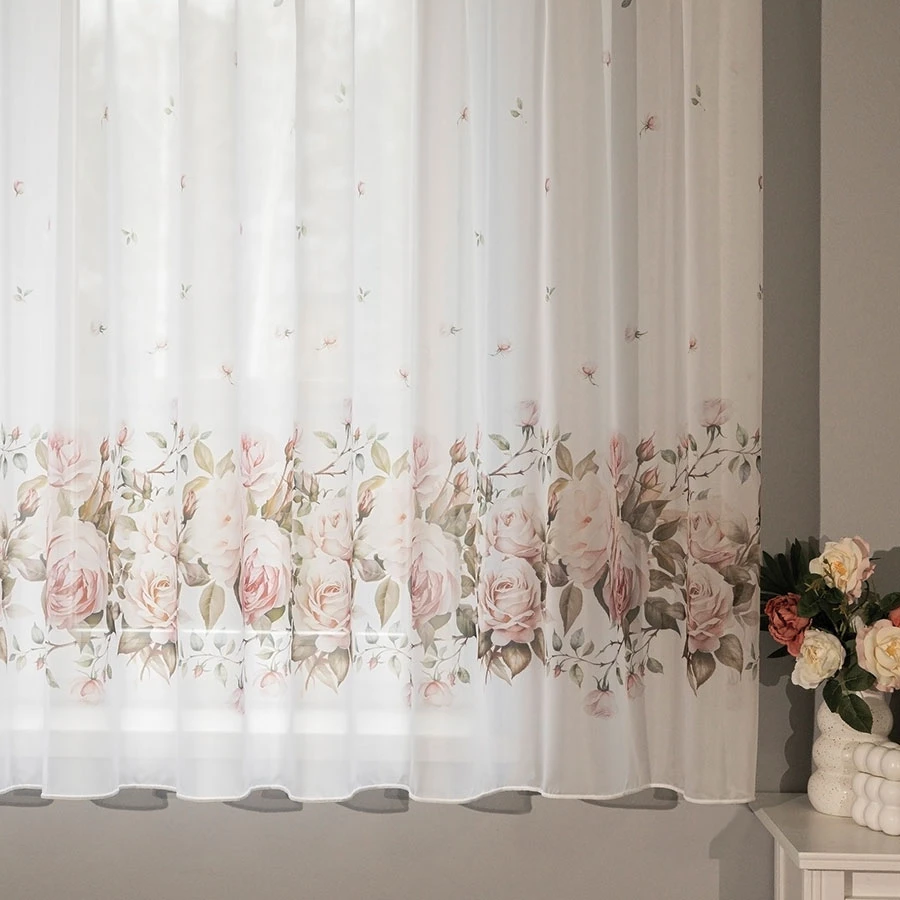 Firanka ROSETTE dostępna jest w dwóch wysokościach, co pozwala dopasować ją do różnych rodzajów okien. Dzięki wykonaniu z firanki woalowej oraz drukowanemu wzorowi kwiatów róży, produkt ten będzie doskonałym dodatkiem do wnętrz o różnym charakterze.