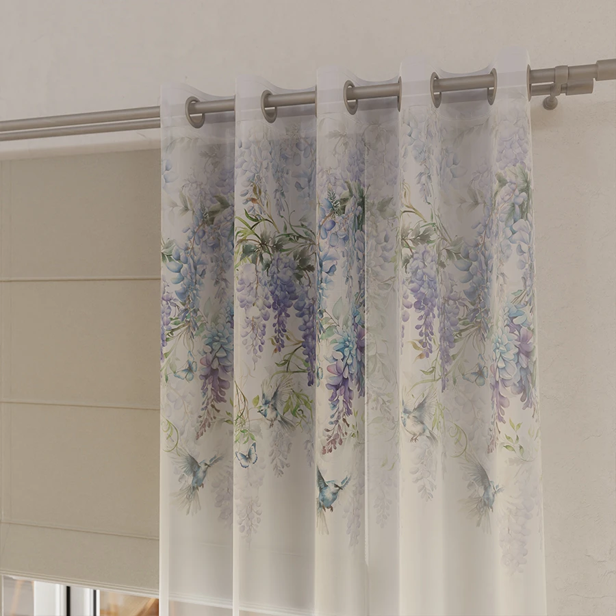 Drukowany wzór kwiatów, ptaków i motyli w odcieniach niebieskiego nadaje firance niepowtarzalny urok i dodaje jej nowoczesnego i modnego wyglądu. Delikatne i subtelne wzory sprawiają, że firanka pasuje do każdego rodzaju wystroju wnętrza, dodając mu wyjątkowego uroku i charakteru. Firanka metrażowa pozwala na dostosowanie jej do własnych potrzeb i wymiarów okna, co sprawia, że jest uniwersalnym rozwiązaniem dla każdego pomieszczenia. Lekka tkanina sprawia, że firanka ładnie się układa i delikatnie faluje na powietrzu, tworząc przyjemną atmosferę w pomieszczeniu. Dzięki swojej subtelności, firanka woalowa doskonale sprawdzi się zarówno w sypialni, salonie, jak i pokoju dziecięcym, nadając każdemu z tych pomieszczeń wyjątkowego charakteru i uroku. Dodając do wnętrza nutkę romantyzmu oraz elegancji, firanka stanie się nieodłącznym elementem każdego domu.