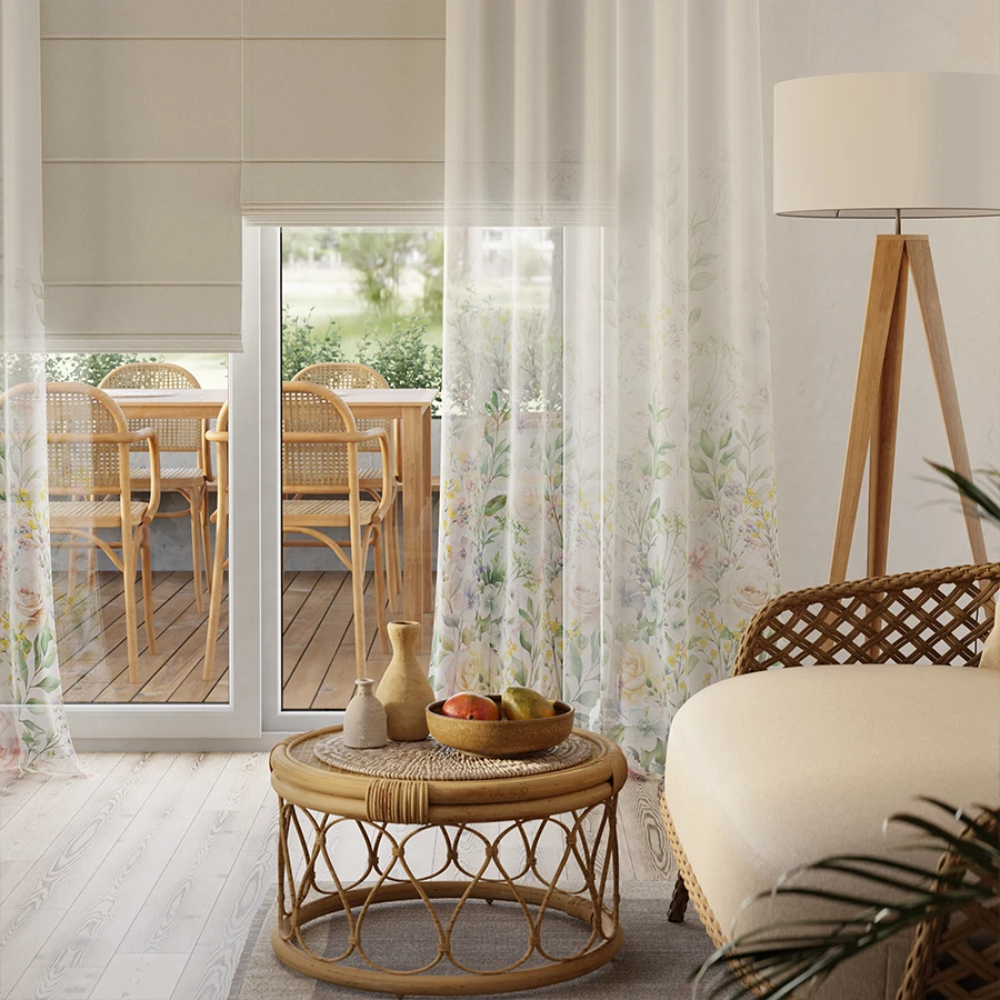 Firanka woalowa z drukowanym wzorem kwiatów i liści to doskonały sposób na stworzenie przytulnej atmosfery w każdym pomieszczeniu. Delikatna, lekka i zwiewna tkanina w kolorze mlecznym doskonale rozprzestrzenia miękki, naturalny światło, co sprawia, że wnętrze staje się bardziej przytulne i ciepłe. Dostępna w dwóch kombinacjach wzoru - od góry i od dołu, firanka ta daje możliwość dopasowania do indywidualnych preferencji i stylu wystroju pomieszczenia. Wzór kwiatów i liści dodaje delikatności i świeżości, sprawiając, że wnętrze nabiera charakteru i uroku. Dzięki możliwości przepuszczania dużej ilości światła, firanka ta sprawdzi się doskonale zarówno w sypialni, salonie, jak i w pokoju dziecięcym. Jest to nie tylko praktyczna, ale także estetyczna dekoracja, która nadaje wnętrzu wyjątkowego charakteru i uroku. Idealna dla osób ceniących sobie subtelną elegancję i naturalny styl we wnętrzu.