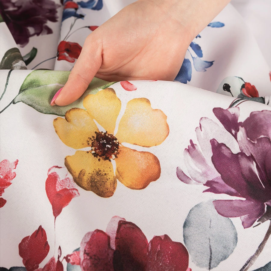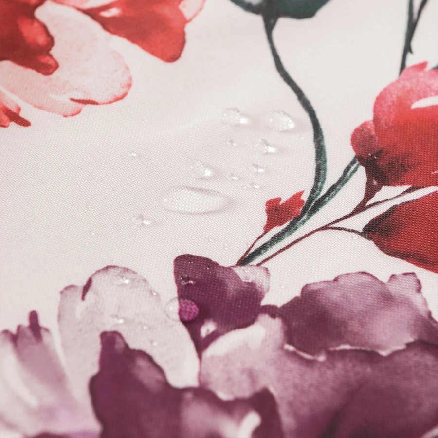 Ten materiał charakteryzuje się pięknym nadrukiem kwiatowym na górze tkaniny, który dodaje delikatności i świeżości każdemu pomieszczeniu. Dolna część tkaniny jest utrzymana w białym kolorze, co nadaje jej elegancji i uniwersalności. Dzięki wodoodpornemu podkładowi, ta tkanina sprawdzi się zarówno wewnątrz, jak i na zewnątrz domu. Można ją z powodzeniem wykorzystać do dekoracji tarasu czy ogrodu, bez obawy o jej zniszczenie przez deszcz czy wilgoć. Dodatkowo, materiał ten ładnie się układa, dzięki czemu można go łatwo ułożyć na meblach, czy zasłonach. Tkanina przepuszcza dużo światła, co sprawia, że pomieszczenia stają się bardziej jasne i przyjemne. Dodatkowo, została wyprodukowana w Polsce, co gwarantuje wysoką jakość i trwałość materiału. Dzięki tym wszystkim zaletom, ta tkanina jest doskonałym wyborem dla osób, które cenią sobie funkcjonalność, estetykę i wygodę. Pozwala ona stworzyć oryginalne i stylowe aranżacje wnętrz, które zachwycą wszystkich gości.