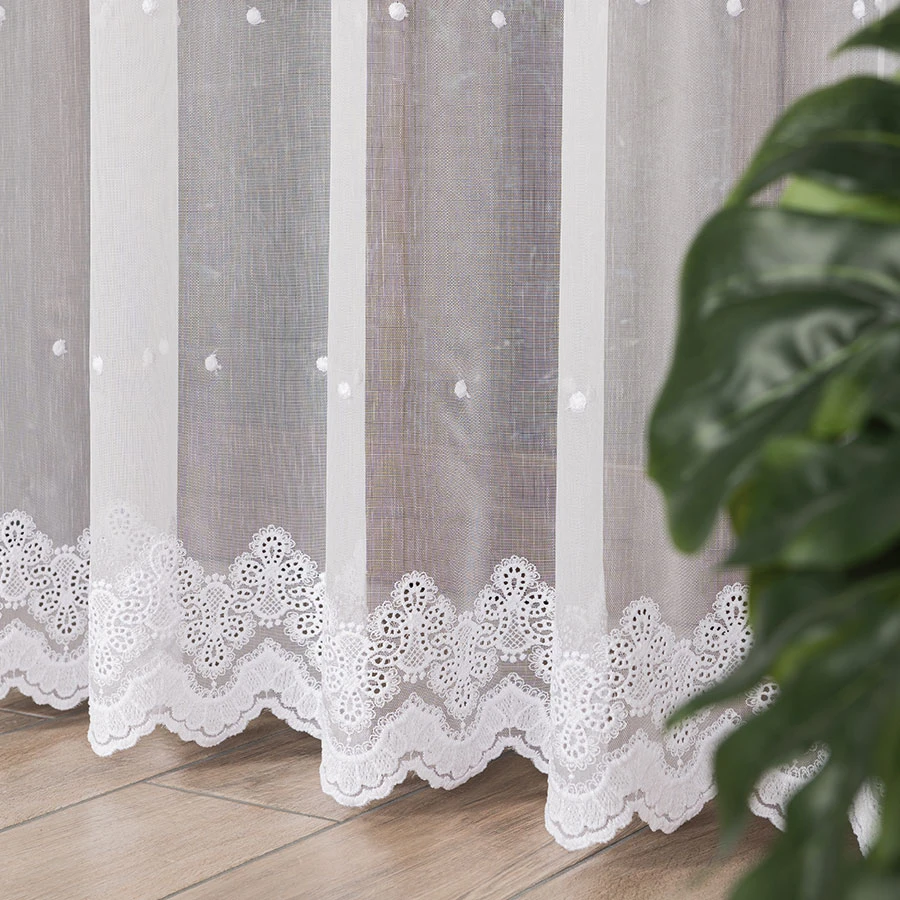 Zależy nam na zadowoleniu Klienta, dlatego wybieramy jedynie najwyższej jakości produkty polskich i zagranicznych producentów. Firanka haftowana ucinana lub szyta na indywidualne zamówienie! Nie jest to produkt gotowy, dlatego nie ma możliwości odstąpienia od umowy (zwrotu, ani wymiany), dlatego prosimy o przemyślane zakupy.