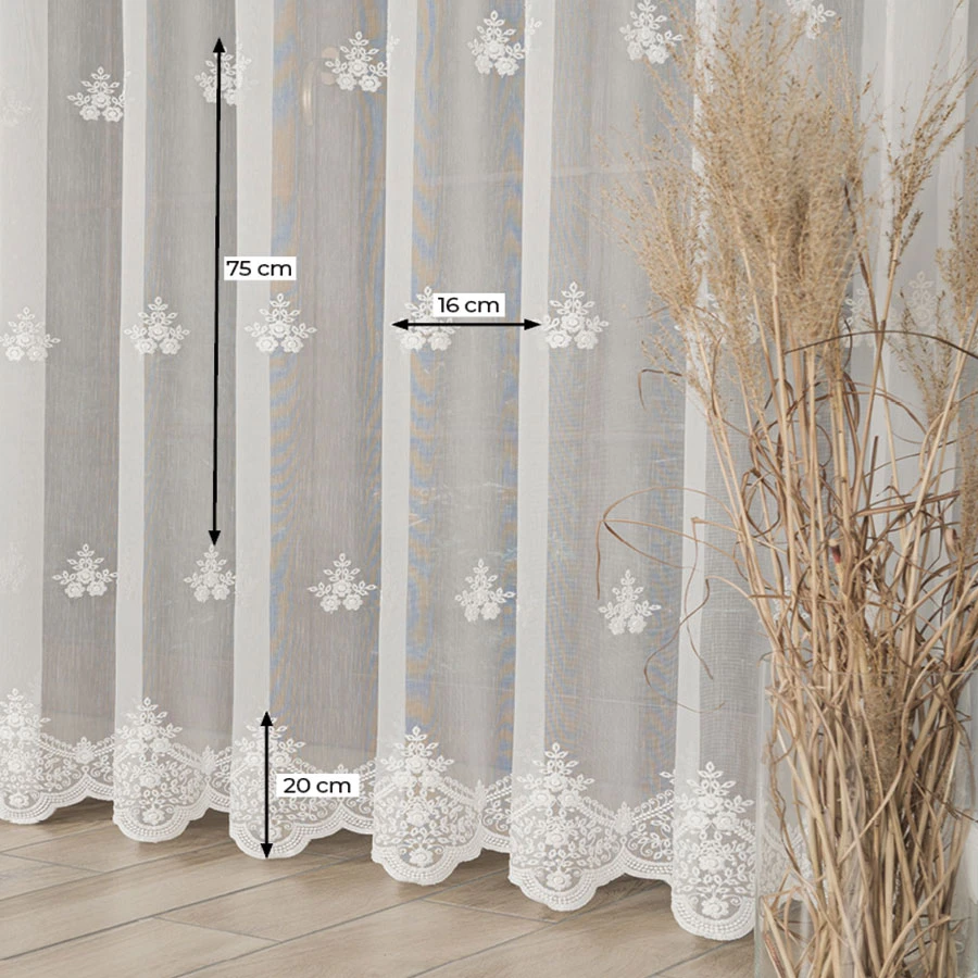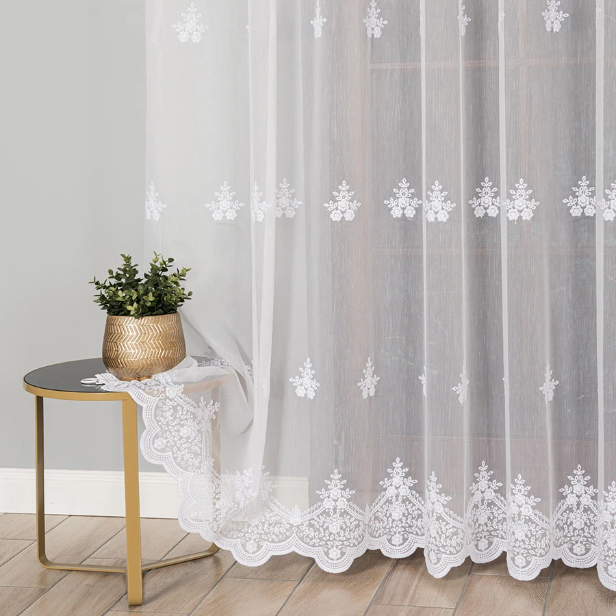 Zależy nam na zadowoleniu Klienta, dlatego wybieramy jedynie najwyższej jakości produkty polskich i zagranicznych producentów. Firanka haftowana ucinana lub szyta na indywidualne zamówienie! Nie jest to produkt gotowy, dlatego nie ma możliwości odstąpienia od umowy (zwrotu, ani wymiany), dlatego prosimy o przemyślane zakupy.