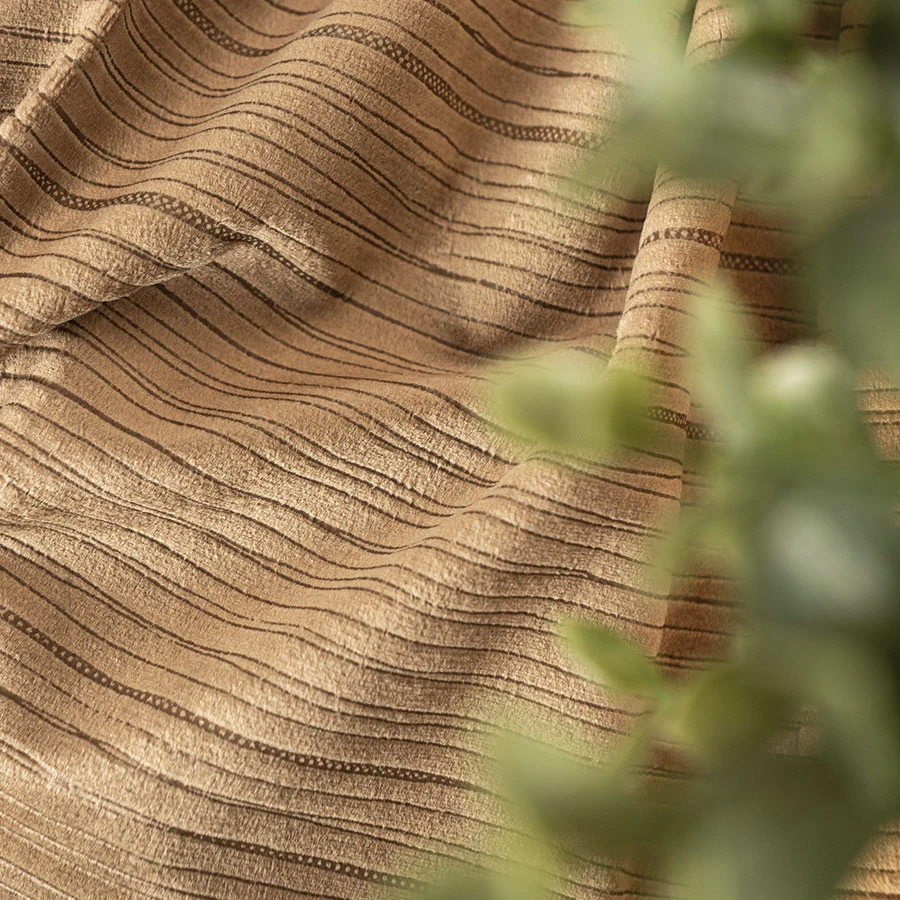 Nadaj swojemu wnętrzu wyjątkowy styl i ciepło dzięki zasłonie wykonanej z wysokiej jakości weluru. Jej miękka, aksamitna faktura podkreśla luksusowy charakter wnętrza, a pionowe pasy optycznie wydłużają przestrzeń. Gruba tkanina zapewnia efekt półzaciemnienia, co pozwala na kontrolę ilości wpadającego światła.