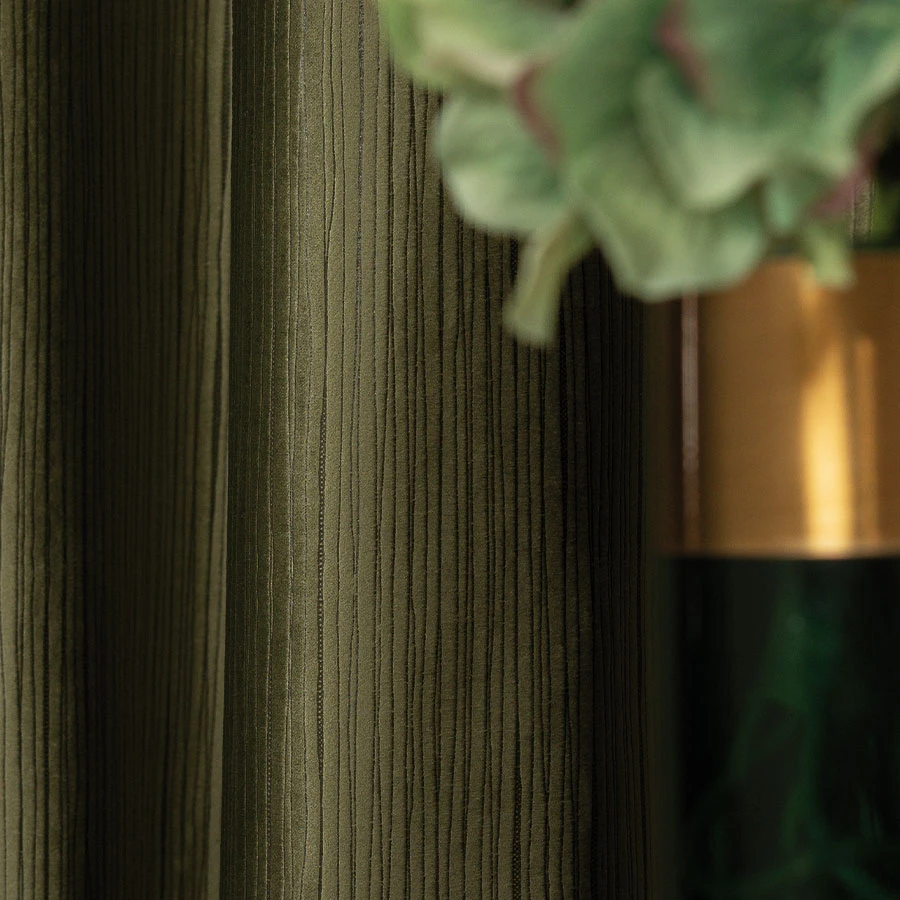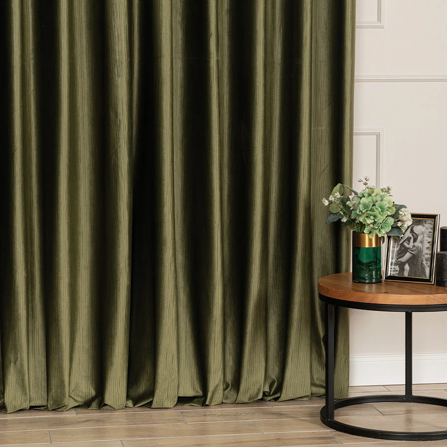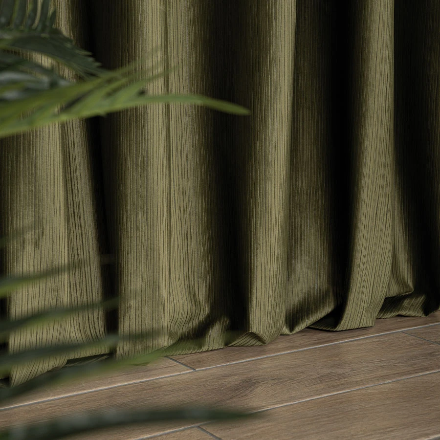 Elegancka zasłona welurowa z tkanym wzorem w pionowe pasy to połączenie luksusu i praktyczności. Miękka, aksamitna tkanina o półzaciemniających właściwościach doda wnętrzu przytulności i elegancji.