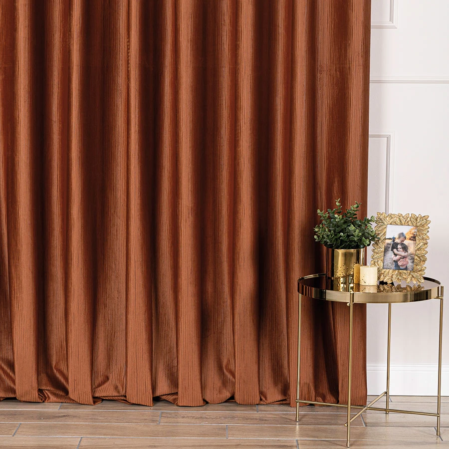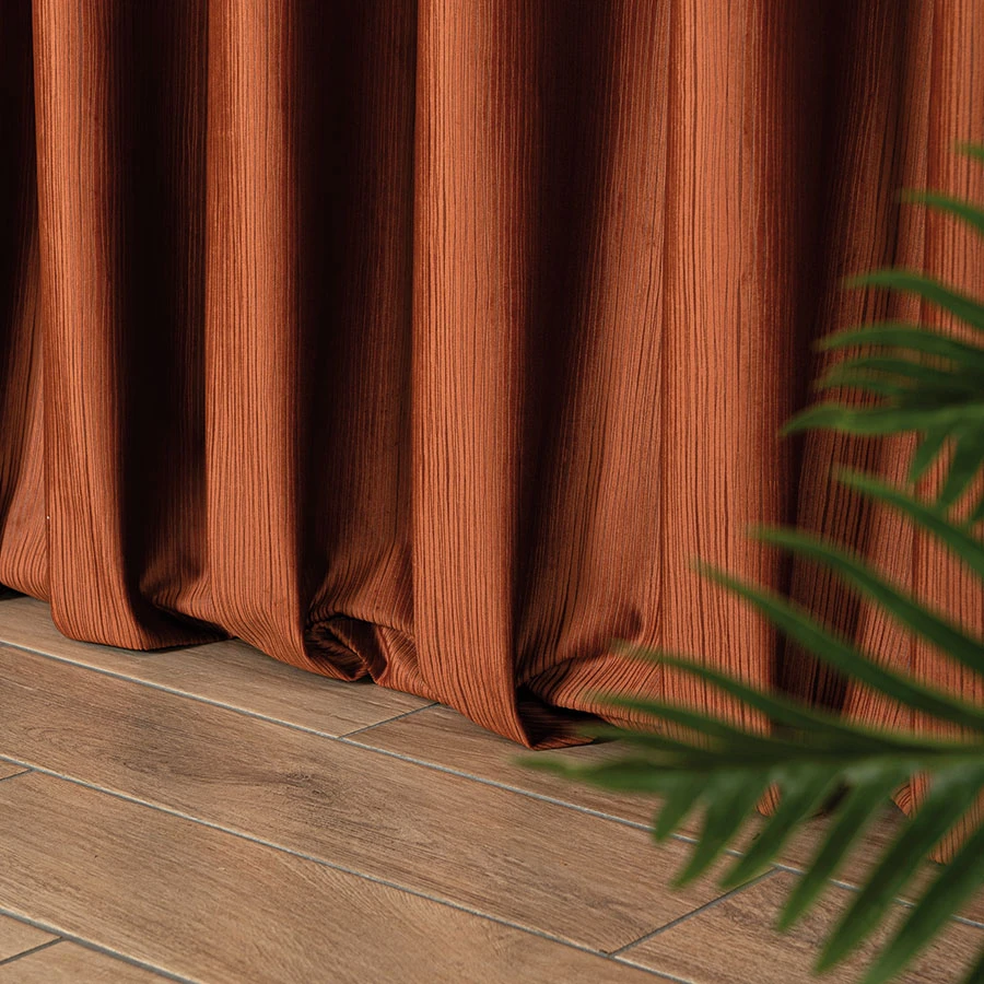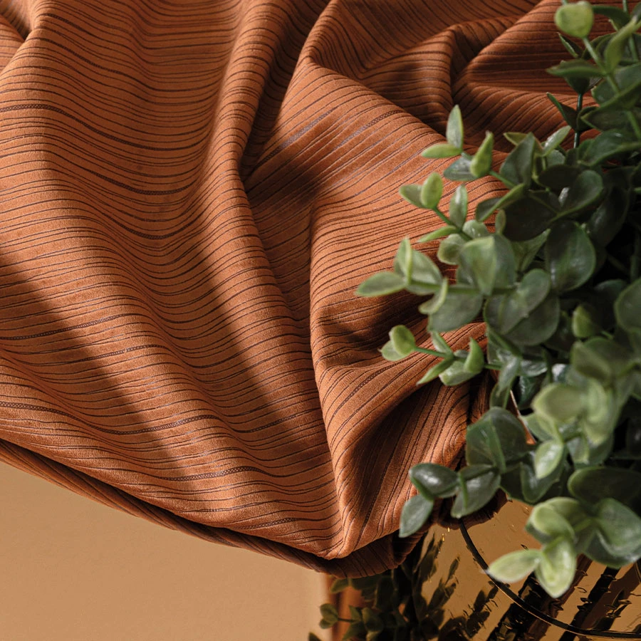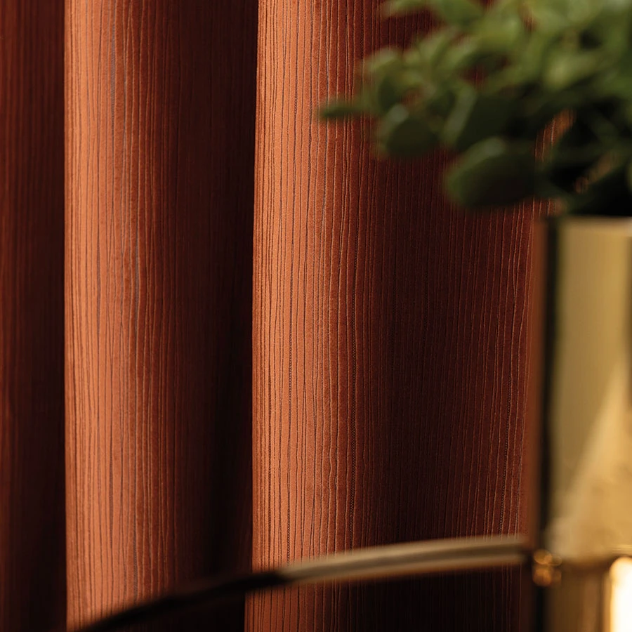 Nadaj swojemu wnętrzu wyjątkowy styl i ciepło dzięki zasłonie wykonanej z wysokiej jakości weluru. Jej miękka, aksamitna faktura podkreśla luksusowy charakter wnętrza, a pionowe pasy optycznie wydłużają przestrzeń. Gruba tkanina zapewnia efekt półzaciemnienia, co pozwala na kontrolę ilości wpadającego światła.