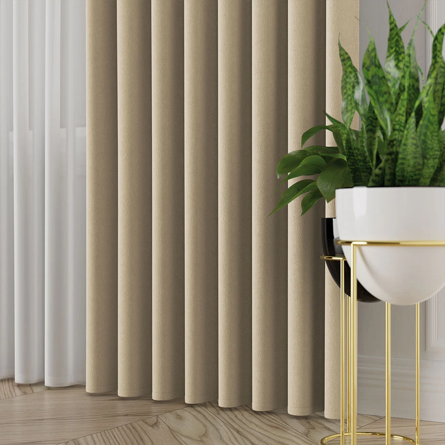 Dodaj wnętrzu wyjątkowego charakteru dzięki zasłonie wykonanej z wysokiej jakości, gładkiej tkaniny dekoracyjnej. Jej gruba, lekko sztywna faktura sprawia, że pięknie układa się na oknie, a półzaciemniające właściwości pozwalają na regulację ilości wpadającego światła.