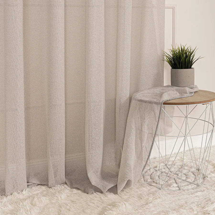 Firanka AISHA to nieodłączny element wystroju wnętrz, który dodaje im elegancji i lekkości. Jest dostępna w metrażu, dzięki czemu można ją dopasować do każdego okna w domu. Wykonana jest z wysokiej jakości tkaniny z siatki -bukli, co sprawia, że jest trwała i odporna na uszkodzenia. Dodatkowym atutem jest to, że nie wymaga prasowania, co ułatwia jej pielęgnację. Firanka dostępna jest w kilku różnych kolorach, dzięki czemu można ją dopasować do wystroju każdego pomieszczenia. Wykończona ołowianym obciążnikiem, co sprawia, że pięknie się układa i nie wymaga dodatkowych zabiegów, aby zachować idealny wygląd. Jej miękka struktura sprawia, że delikatnie opada, tworząc przyjemny i subtelny efekt w pomieszczeniu.