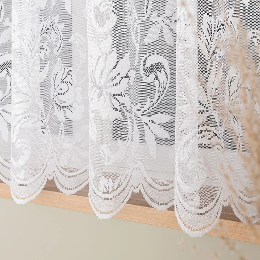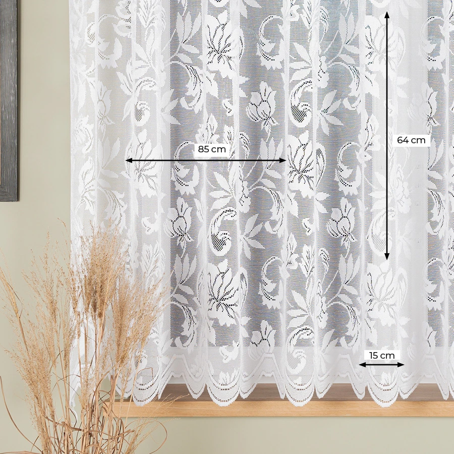 Dodaj wnętrzu wyjątkowy urok dzięki firance żakardowej z florystycznym wzorem. Wykonana z lekkiego i delikatnego materiału, pięknie rozprasza światło, wprowadzając do pomieszczenia przyjemną atmosferę.