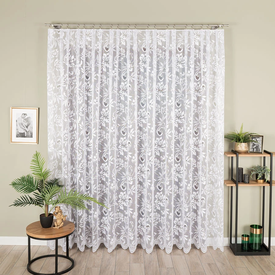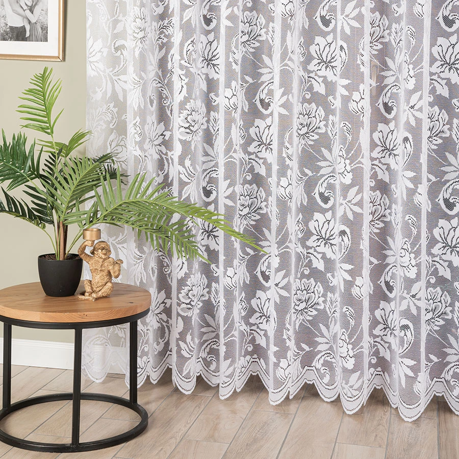 Dodaj wnętrzu wyjątkowy urok dzięki firance żakardowej z florystycznym wzorem. Wykonana z lekkiego i delikatnego materiału, pięknie rozprasza światło, wprowadzając do pomieszczenia przyjemną atmosferę.