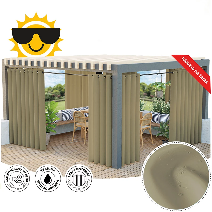 Zasłona gotowa na przelotkach doskonale sprawdzi się w każdym pomieszczeniu na zewnątrz, tworząc przytulną atmosferę i zapewniając intymność. Idealna do wykorzystania zarówno na tarasie podczas letnich wieczorów, jak i na balkonie czy altanie, gdzie chcemy cieszyć się świeżym powietrzem bez obawy o niechciane spojrzenia. Dzięki wysokiej jakości wykonania i trwałemu materiałowi, zasłona będzie cieszyć oko przez wiele sezonów, zachowując swoje walory estetyczne i funkcjonalne. To doskonały wybór dla osób ceniących sobie komfort, elegancję i praktyczne rozwiązania w swoim otoczeniu.