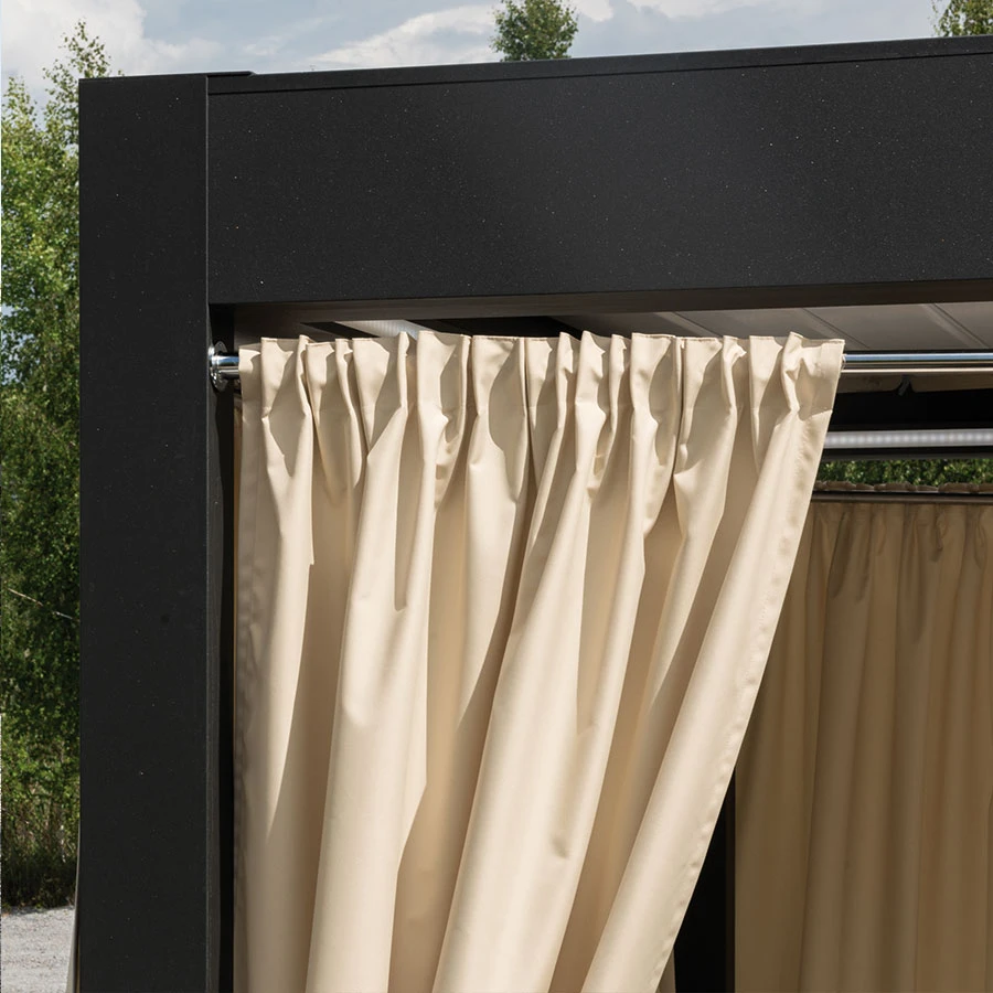 Kolekcja zasłon Gardenia obejmuje siedem różnych kolorów, co daje duży wybór i pozwala dopasować zasłonę do reszty aranżacji ogrodu. Dodatkowo dostępne są różne rozmiary, co umożliwia idealne dopasowanie zasłony do konkretnego miejsca.