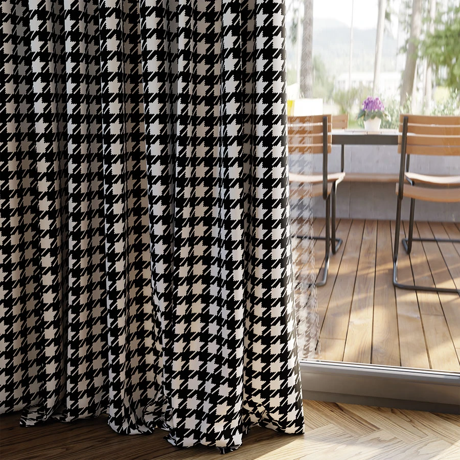 Tkanina zasłonowa w pepitkę to elegancki i stylowy dodatek do każdego wnętrza. W klasycznych kolorach czarno-białych, nadaje pomieszczeniu nowoczesnego charakteru.
