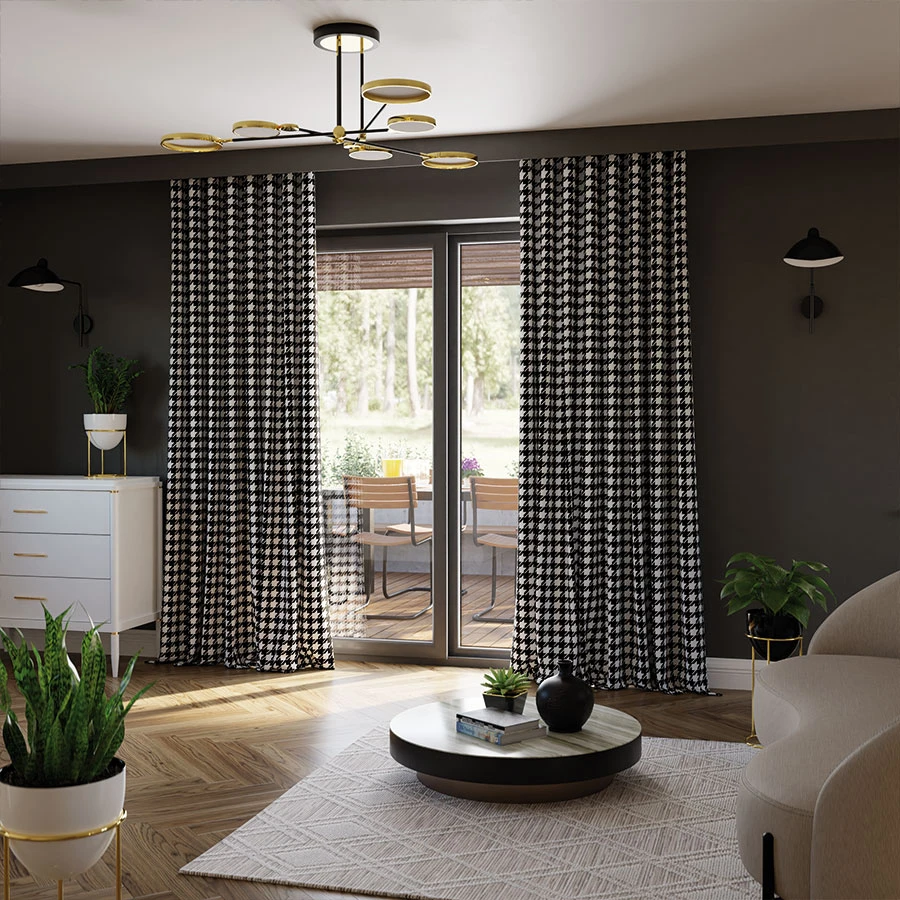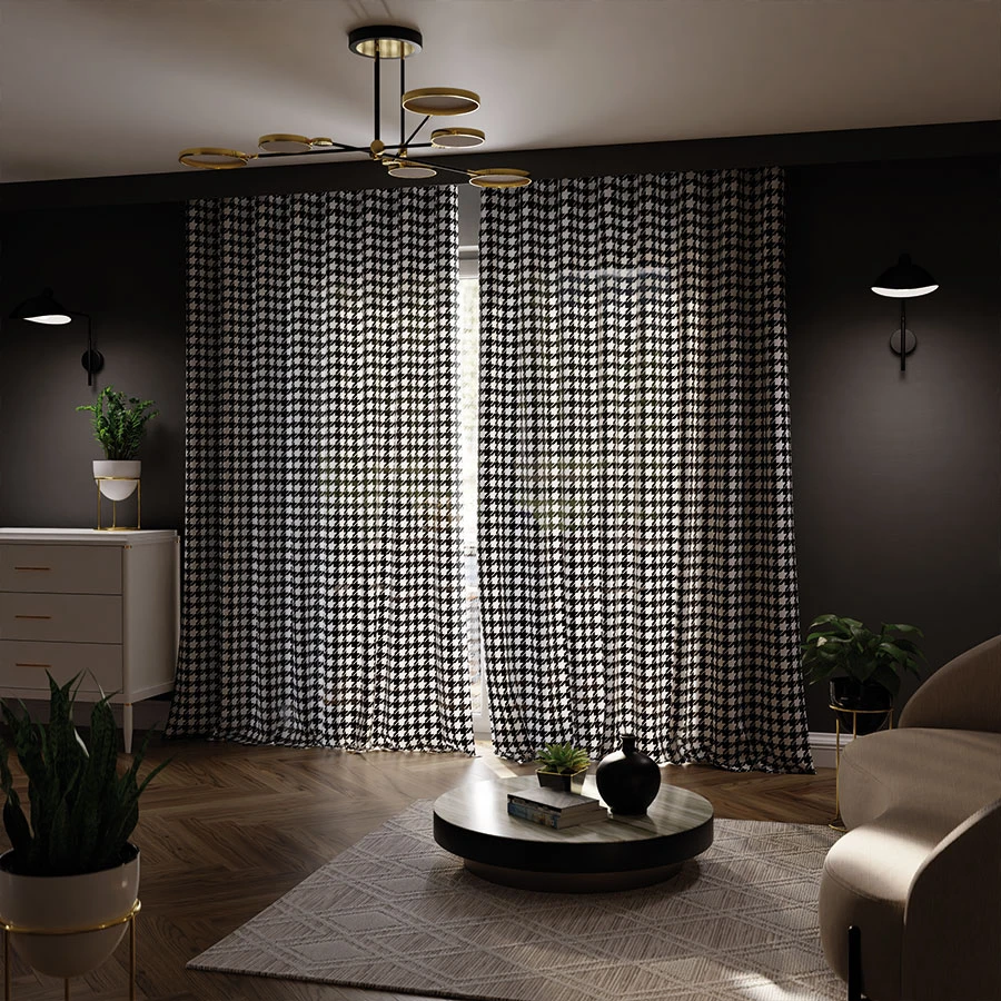 Tkanina zasłonowa w pepitkę to elegancki i stylowy dodatek do każdego wnętrza. W klasycznych kolorach czarno-białych, nadaje pomieszczeniu nowoczesnego charakteru.