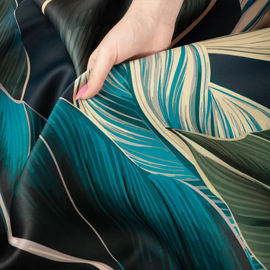 Dzięki specjalnej strukturze tkaniny, światło słoneczne nie przedostaje się przez nią, co sprawia, że pomieszczenie staje się całkowicie zaciemnione. To doskonały wybór dla osób pracujących zmianowo lub dla tych, którzy chcą stworzyć w swoim domu atmosferę relaksu i spokoju. Modny wzór liści, który zdobi tę tkaninę, dodaje jej elegancji i subtelnego uroku. Liście są delikatnie wyhaftowane na tle tkaniny, co sprawia, że zasłona wygląda bardzo stylowo i nowocześnie. Dostępna jest w dwóch stonowanych kolorach: białym i granatowym, które doskonale komponują się z różnymi aranżacjami wnętrz. Bez względu na to, czy preferujesz jasne i minimalistyczne wnętrza, czy też bardziej wyraziste i klasyczne stylizacje, tkanina ta z pewnością wpasuje się w Twoje potrzeby. Tkanina ładnie się układa dzięki swojej miękkiej i gładkiej strukturze. Dzięki temu zasłona wygląda elegancko i estetycznie, dodając przyjemny akcent do każdego pomieszczenia. Możesz ją zawiesić na zwykłych karniszach lub też zdecydować się na eleganckie szyny, które dodadzą całości jeszcze większej wytworności. Jeśli więc poszukujesz praktycznej, ale jednocześnie stylowej zasłony, tkanina z modnym wzorem liści będzie doskonałym wyborem. Zapewni Ci nie tylko intymność i zaciemnienie, ale także estetyczny wygląd i elegancję w Twoim wnętrzu.
