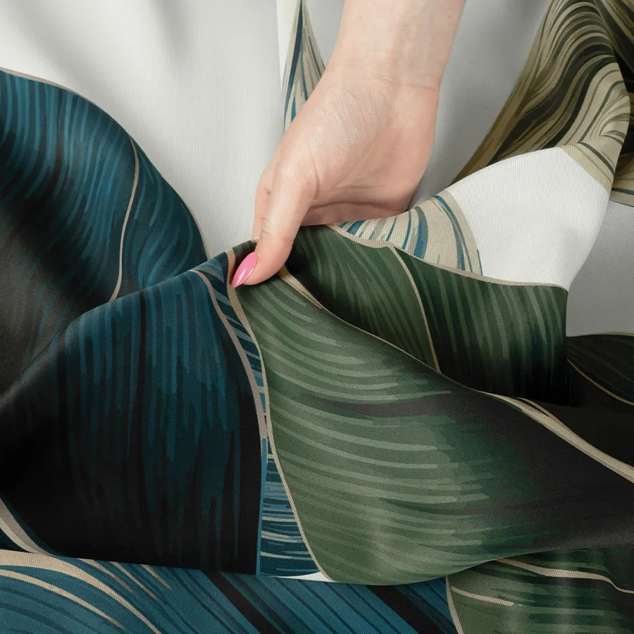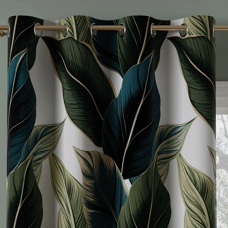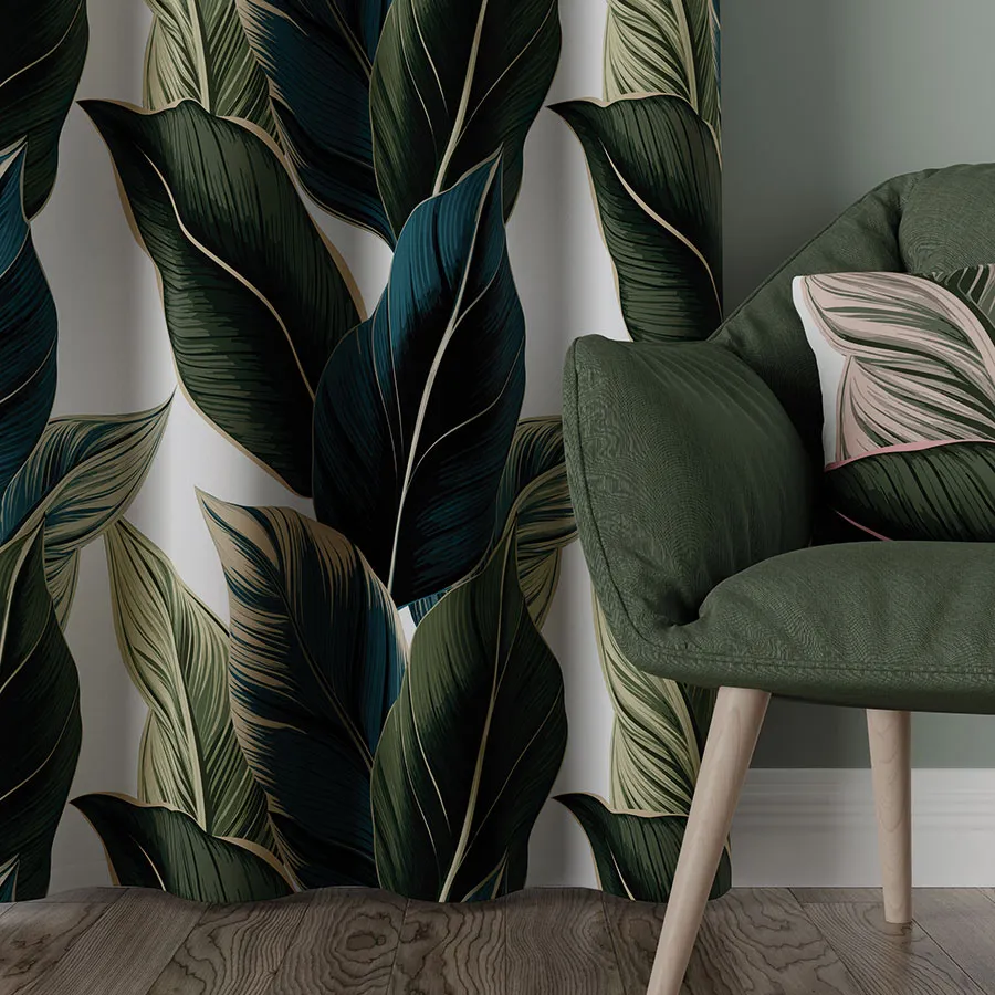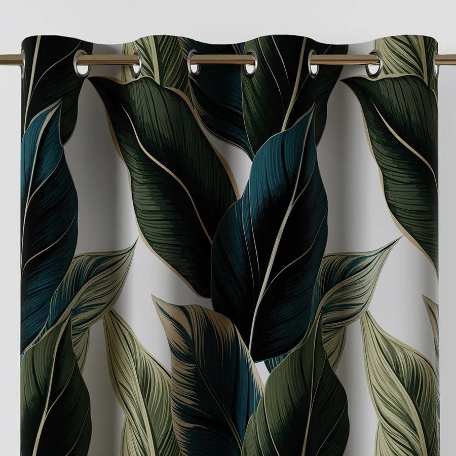 Dzięki specjalnej strukturze tkaniny, światło słoneczne nie przedostaje się przez nią, co sprawia, że pomieszczenie staje się całkowicie zaciemnione. To doskonały wybór dla osób pracujących zmianowo lub dla tych, którzy chcą stworzyć w swoim domu atmosferę relaksu i spokoju. Modny wzór liści, który zdobi tę tkaninę, dodaje jej elegancji i subtelnego uroku. Liście są delikatnie wyhaftowane na tle tkaniny, co sprawia, że zasłona wygląda bardzo stylowo i nowocześnie. Dostępna jest w dwóch stonowanych kolorach: białym i granatowym, które doskonale komponują się z różnymi aranżacjami wnętrz. Bez względu na to, czy preferujesz jasne i minimalistyczne wnętrza, czy też bardziej wyraziste i klasyczne stylizacje, tkanina ta z pewnością wpasuje się w Twoje potrzeby. Tkanina ładnie się układa dzięki swojej miękkiej i gładkiej strukturze. Dzięki temu zasłona wygląda elegancko i estetycznie, dodając przyjemny akcent do każdego pomieszczenia. Możesz ją zawiesić na zwykłych karniszach lub też zdecydować się na eleganckie szyny, które dodadzą całości jeszcze większej wytworności. Jeśli więc poszukujesz praktycznej, ale jednocześnie stylowej zasłony, tkanina z modnym wzorem liści będzie doskonałym wyborem. Zapewni Ci nie tylko intymność i zaciemnienie, ale także estetyczny wygląd i elegancję w Twoim wnętrzu.