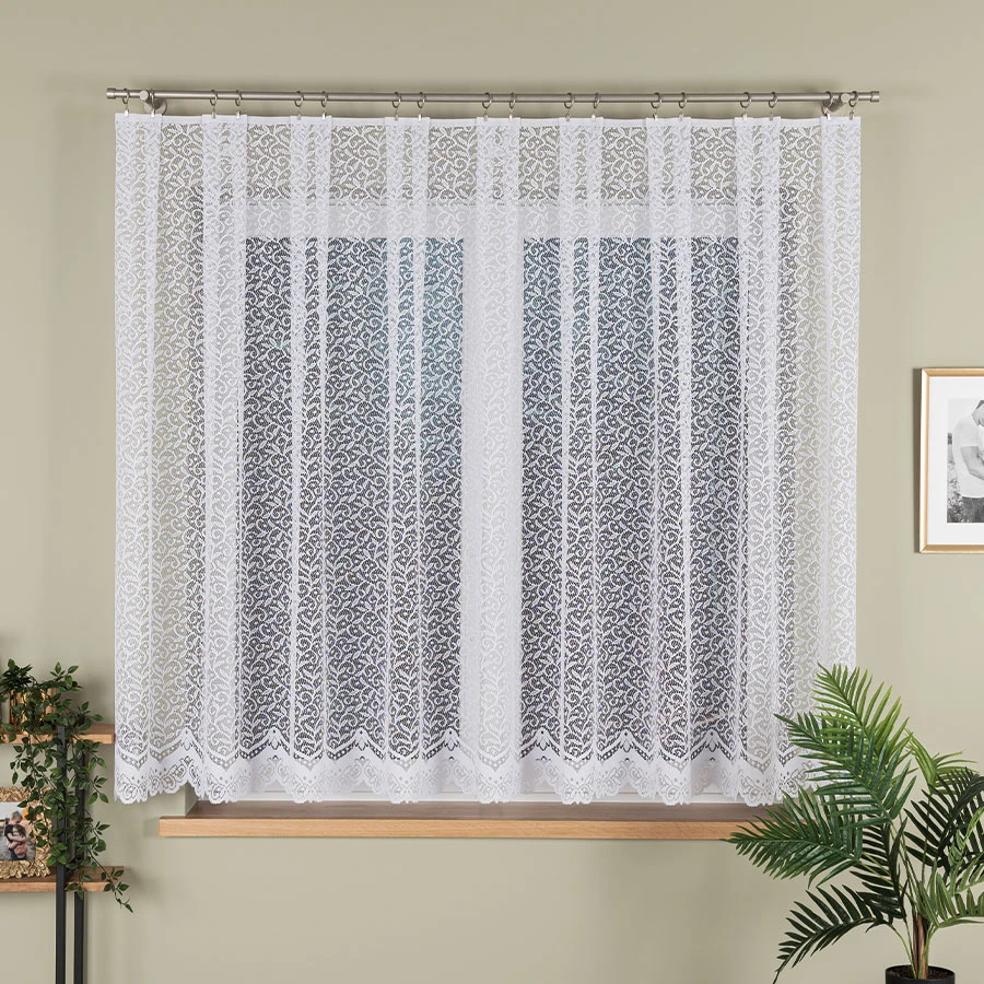 Dzięki tej firanie Twoje wnętrze nabierze eleganckiego, lekkiego charakteru, a naturalny wzór liści doda mu przytulności. Wybierz klasyczną biel i ciesz się piękną aranżacją okna! 🏡✨