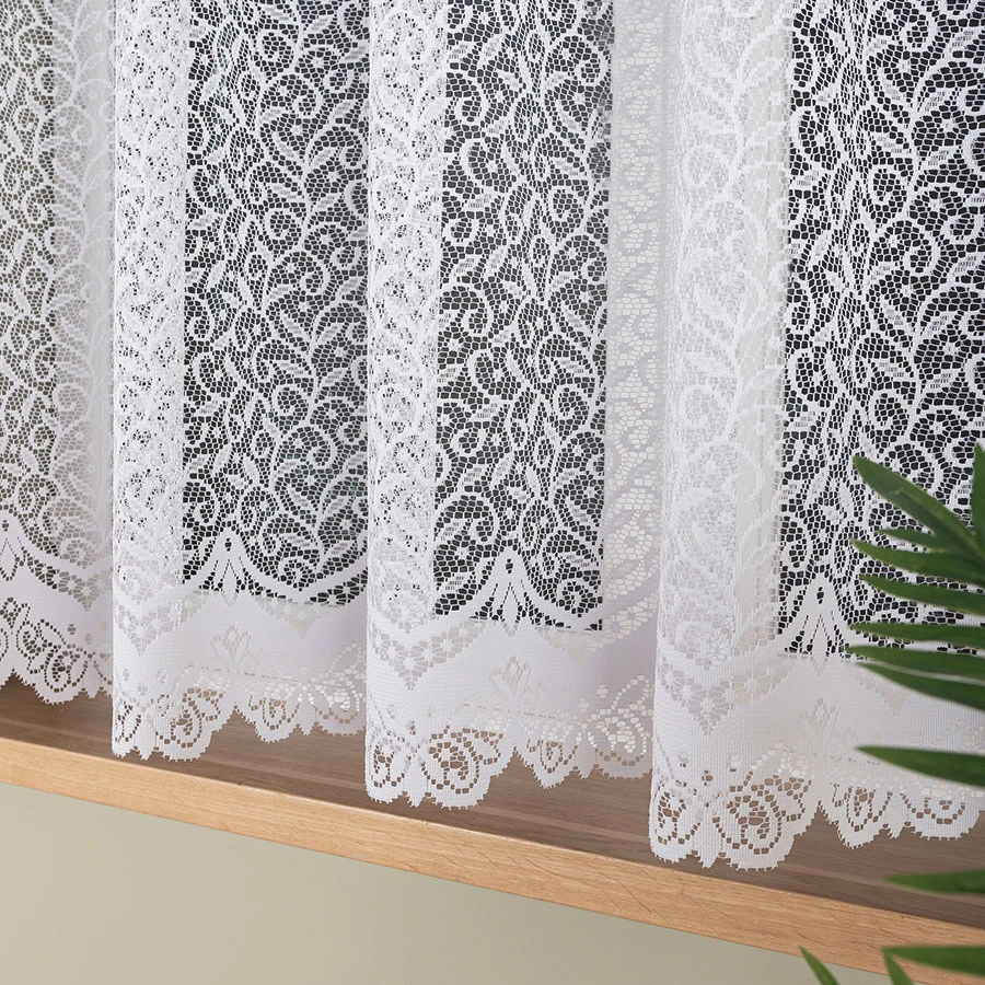 Wykonana z wysokiej jakości dzianiny żakardowej, firana jest nie tylko stylowa, ale i funkcjonalna. Jej lekka struktura doskonale przepuszcza światło, rozjaśniając wnętrze i nadając mu przestronności. Wzór inspirowany naturą dodaje wnętrzu subtelnej elegancji, a laserowo wytapiany dół nadaje całości starannego wykończenia.