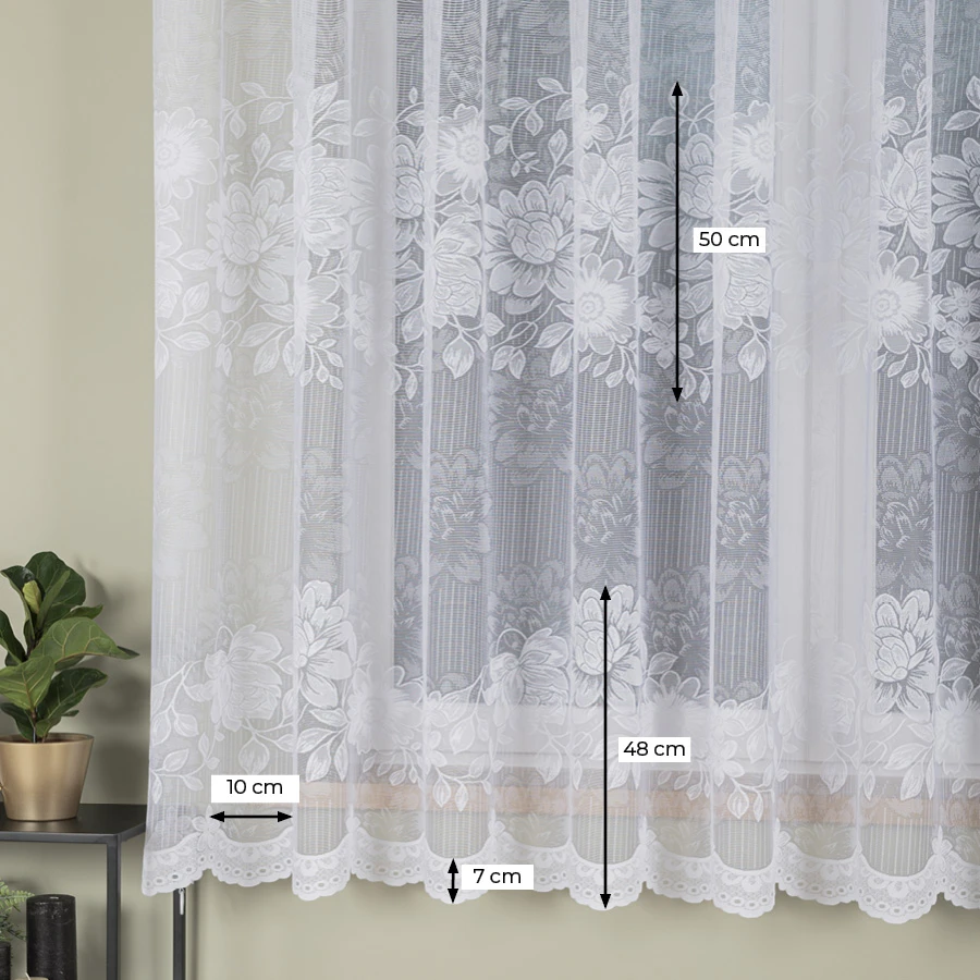 Zależy nam na zadowoleniu Klienta, dlatego wybieramy jedynie najwyższej jakości produkty polskich i zagranicznych producentów. Firanka żakardowa ucinana lub szyta na indywidualne zamówienie! Nie jest to produkt gotowy, dlatego nie ma możliwości odstąpienia od umowy (zwrotu, ani wymiany), dlatego prosimy o przemyślane zakupy.
