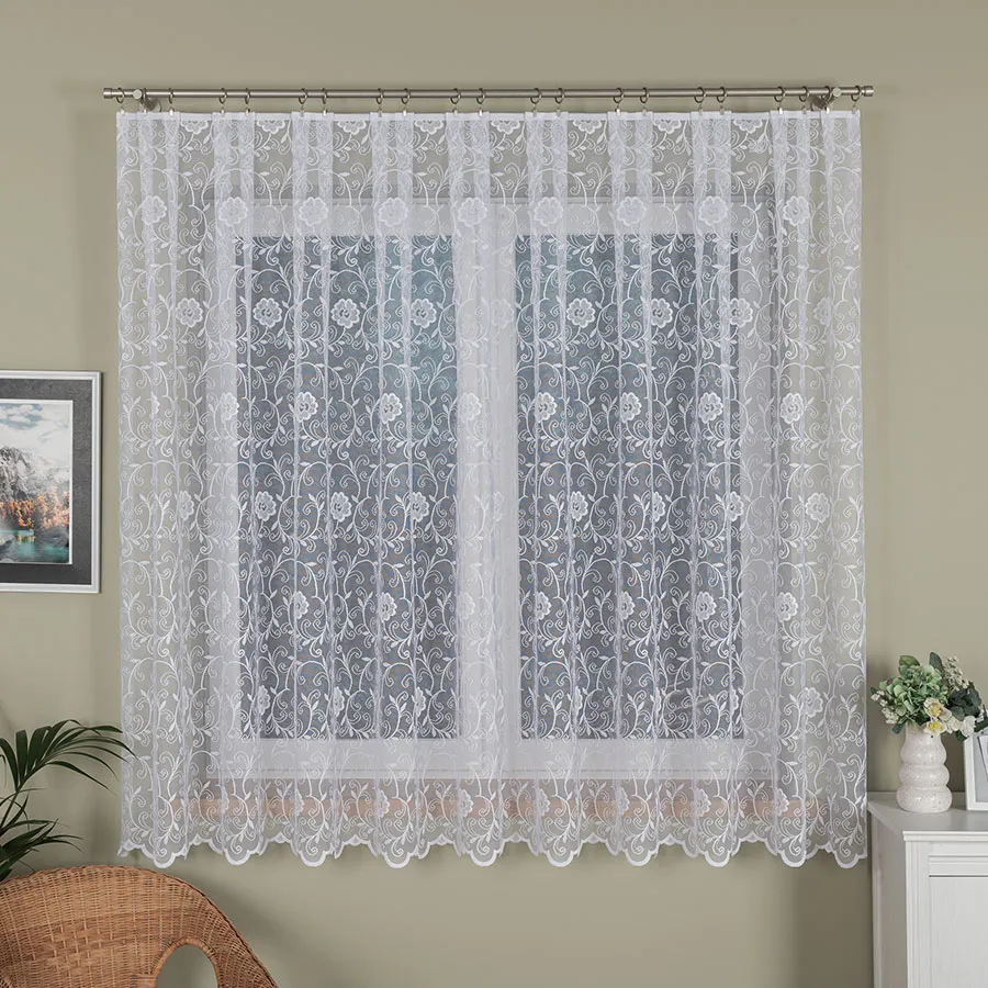 Firanka z delikatnym wzorem kwiatowym to doskonały wybór dla osób ceniących sobie elegancję i subtelność w wystroju wnętrz. Dzięki swojej uniwersalności, pasuje do każdego pomieszczenia, nadając mu wyjątkowego charakteru i stylu.