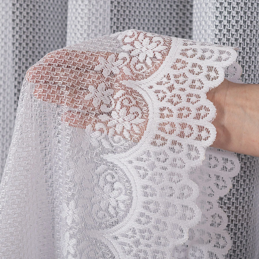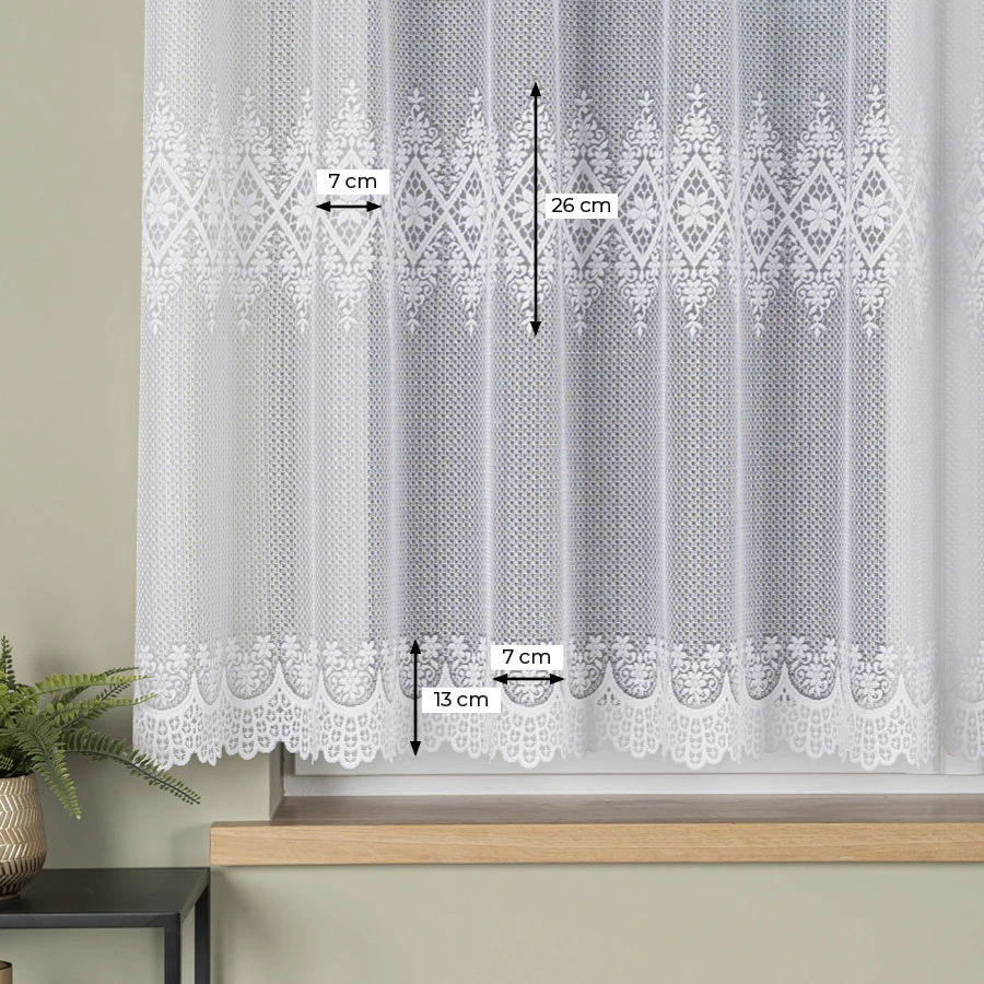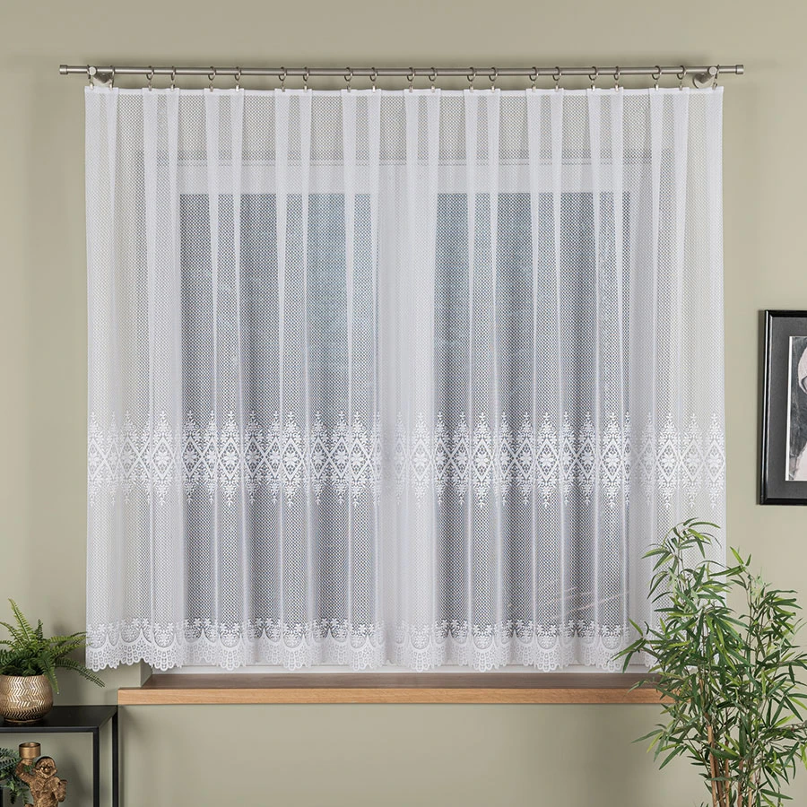 Firanka żakardowa o wzorze pasowym to elegancki dodatek do każdego wnętrza, który wprowadzi do pomieszczenia subtelny, klasyczny charakter.