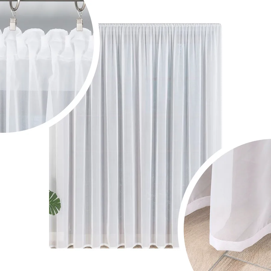 Szukasz szybkiego i łatwego sposobu na dekorację okien w Twoim domu? Ta gotowa firanka z taśmą marszczącą jest idealnym rozwiązaniem! Wykonana z wysokiej jakości woalu, z gładkim wzorem, nie tylko zapewnia trwałość, ale także dodaje uniwersalnego uroku, pasując do każdego wnętrza.