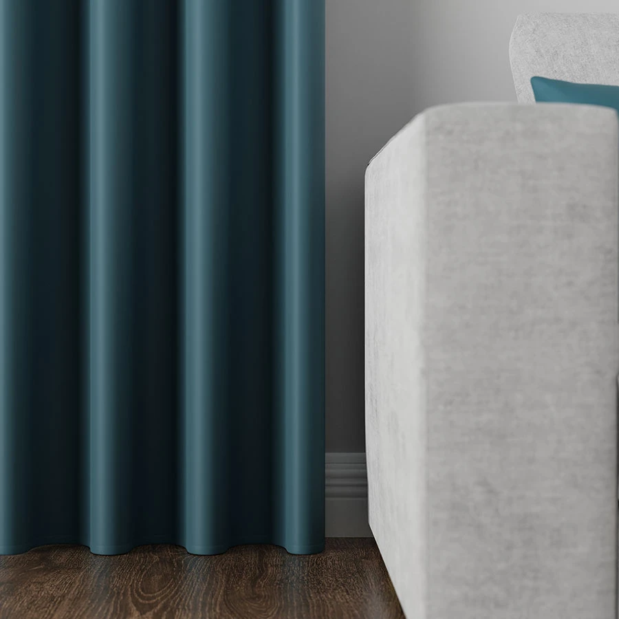 Nowoczesna zasłona blackout o gładkiej strukturze skutecznie zaciemnia wnętrze, zapewniając prywatność i komfort. Wykonana z miękkiego, grubego materiału, idealnie sprawdzi się w sypialni czy salonie.