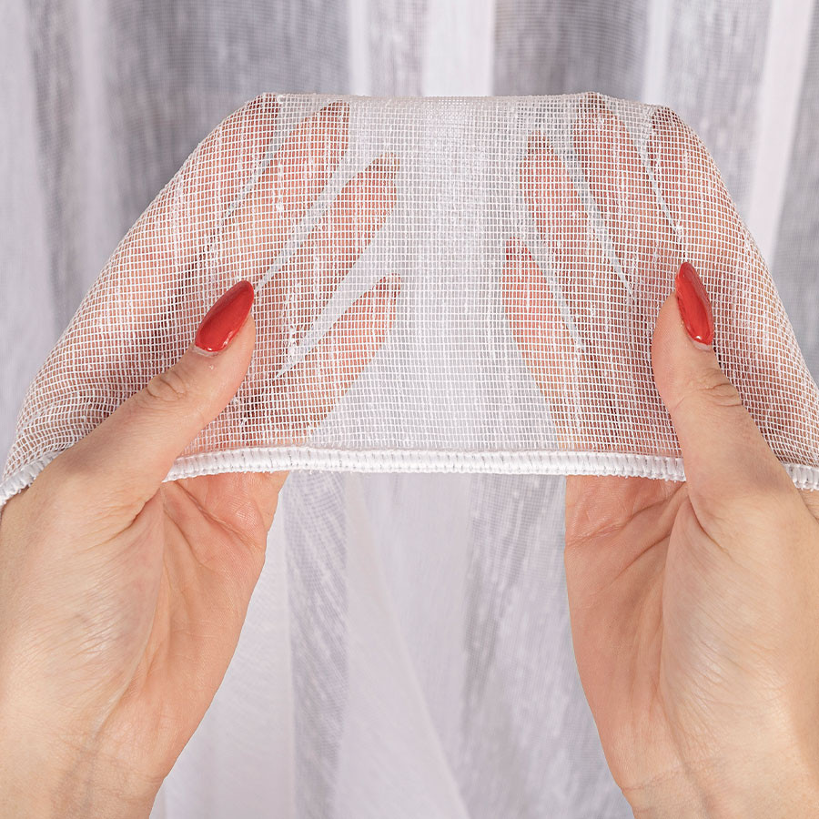 Firana z delikatnej siateczki o wzorze „deszczyku” to połączenie subtelności i nowoczesnego stylu. Przepuszcza bardzo dużo światła, optycznie powiększając przestrzeń. Nie wymaga prasowania, a obciążnik ołowiany zapewnia jej idealne układanie.
