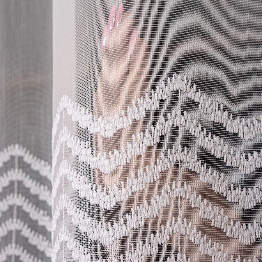 Geometryczny haft – subtelne wzory dodają firance unikalnego wyglądu.