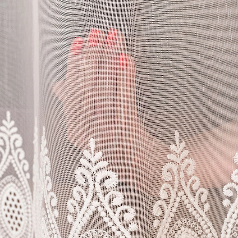 ✅ Ornamentowy haft – precyzyjnie wykonane zdobienia nadają firance elegancji.