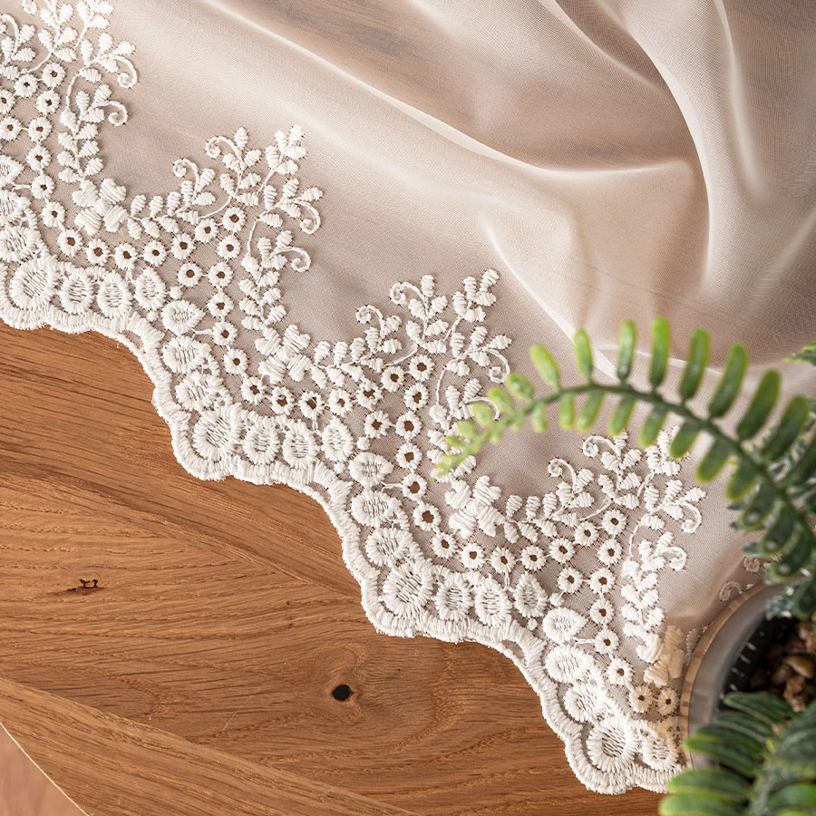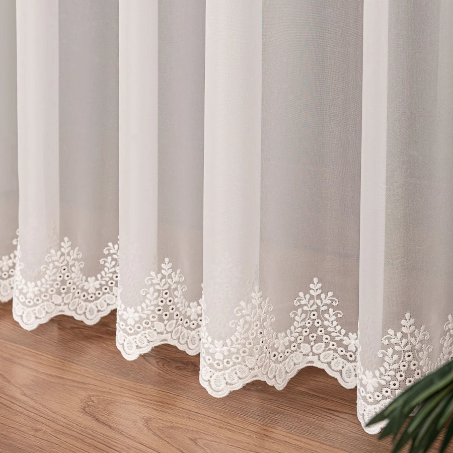 ✅ Starannie wykończony dół – haftowana aplikacja nadaje firanie wyrafinowanego wyglądu.