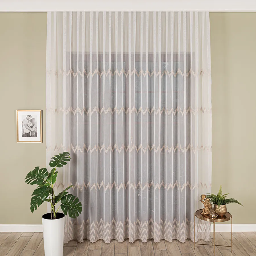 ✅ Elegancki haftowany wzór – subtelne, geometryczne zdobienia nadają firance nowoczesny i stylowy wygląd.