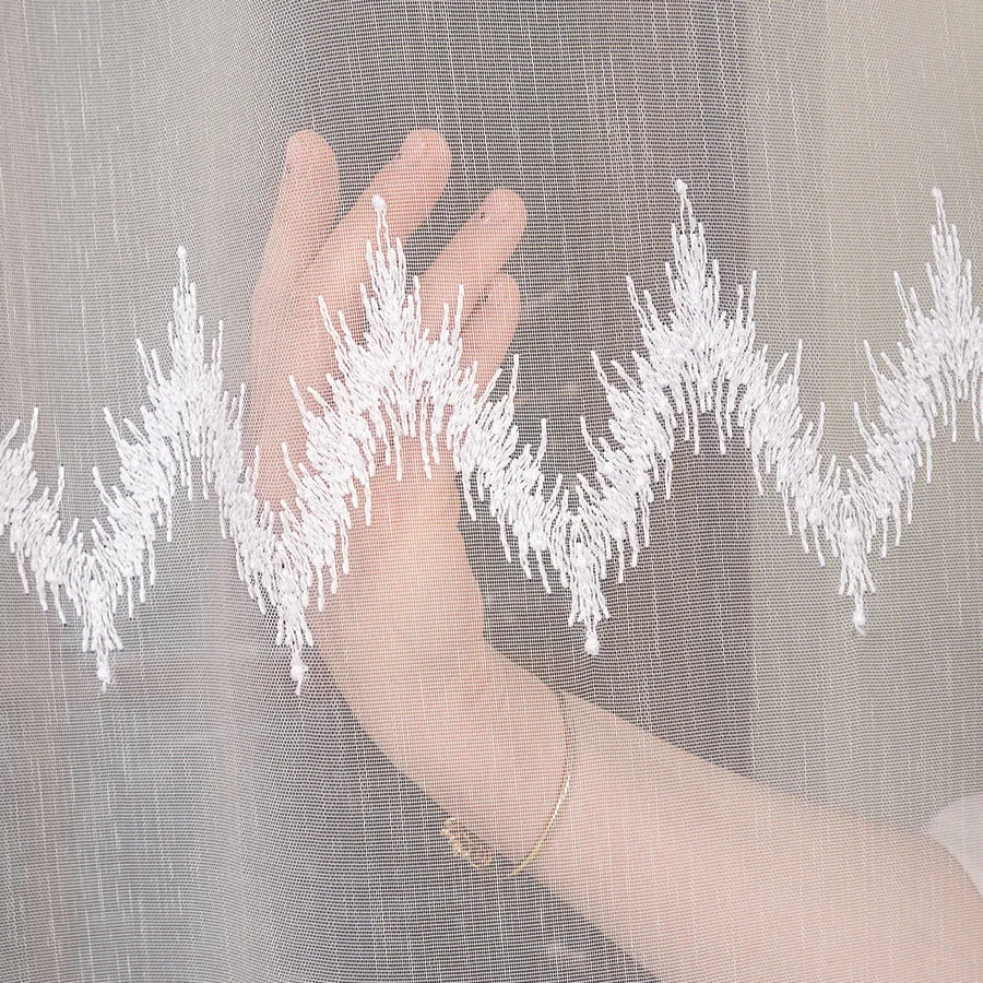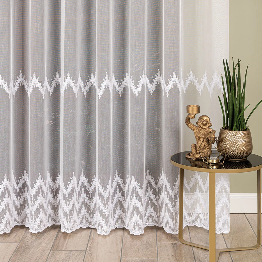Nadaj swojemu wnętrzu subtelny urok i wyjątkowy charakter dzięki firance z delikatnym haftowanym wzorem. Transparentna, lekka siateczka ozdobiona symetrycznym geometrycznym haftem pięknie prezentuje się zarówno w nowoczesnych, jak i klasycznych aranżacjach.