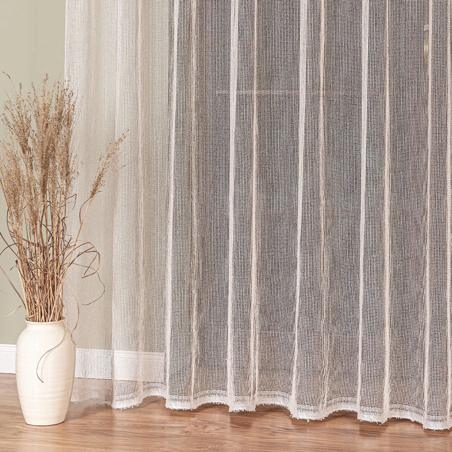 Nadaj swojemu wnętrzu subtelny urok i wyjątkowy charakter dzięki firance z miękkiej i strukturalnej tkaniny bukla. Transparentna i lekka, świetnie komponuje się zarówno z nowoczesnymi, jak i klasycznymi aranżacjami.