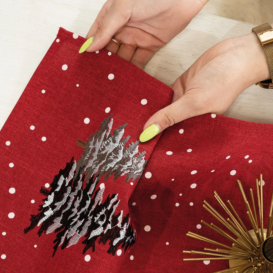 Serweta dekoracyjna to niezbędny element każdego eleganckiego stołu. Wykonana z wysokiej jakości tkaniny poliestrowej, jest nie tylko praktyczna, ale także bardzo efektowna. Jej czerwony kolor doskonale wpisuje się w atmosferę świąteczną, a dekoracyjny haft z motywem świątecznym dodaje jej wyjątkowego uroku. Serweta została starannie obszyta wąską listwą, co nadaje jej elegancki i wyrafinowany wygląd. Dzięki jej uniwersalnemu designowi, doskonale sprawdzi się zarówno podczas rodzinnych uroczystości, jak i podczas spotkań ze znajomymi.