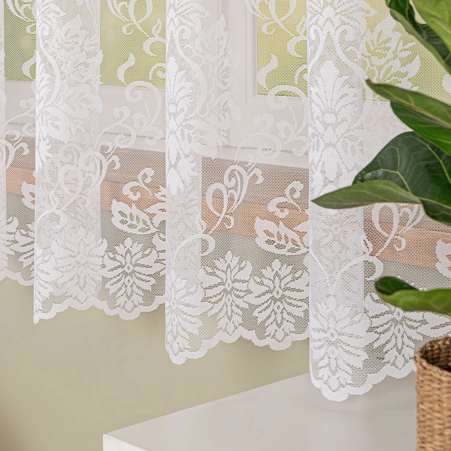 Klasyczny wzór żakardu nadaje firance ponadczasowego charakteru, który będzie pasował do każdego stylu wnętrza.