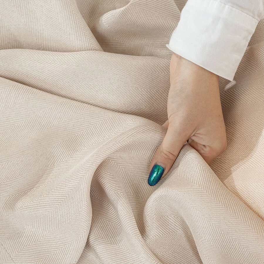 Tkanina dekoracyjna z wzorem jodełek świetnie współgra z pozostałymi produktami z serii JODEŁKA, tworząc spójną i harmonijną aranżację wnętrza.