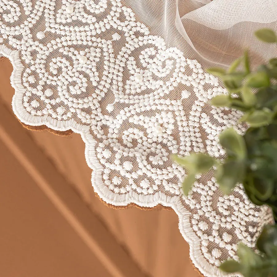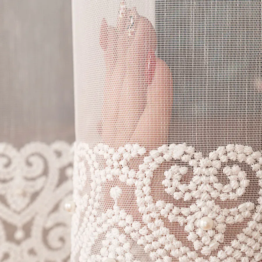 Uniwersalny wzór haftu sprawia, że firanka świetnie komponuje się zarówno z klasycznym, jak i nowoczesnym wystrojem wnętrza.