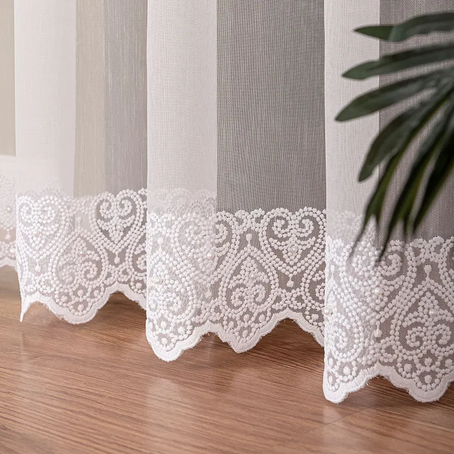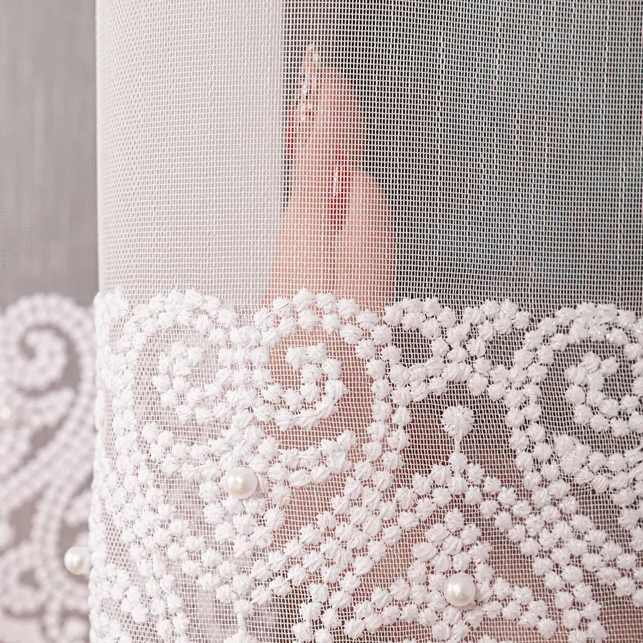 Uniwersalny wzór haftu sprawia, że firanka świetnie komponuje się zarówno z klasycznym, jak i nowoczesnym wystrojem wnętrza.