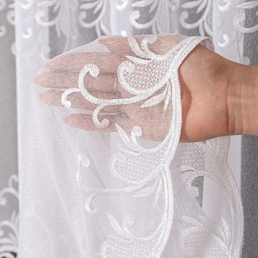 Firanka haftowana z aplikacją gipiurową to doskonały wybór dla osób ceniących sobie wysoką jakość i elegancję. Jej subtelny wzór i wysoka jakość wykonania sprawiają, że będzie ozdobą każdego wnętrza.