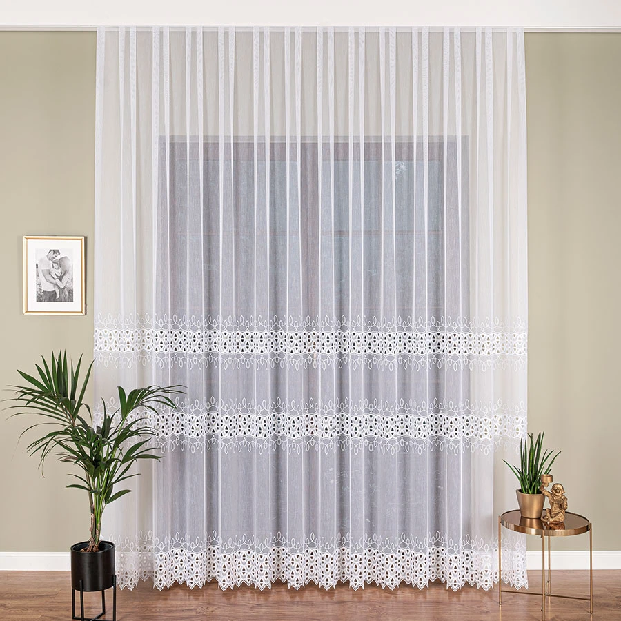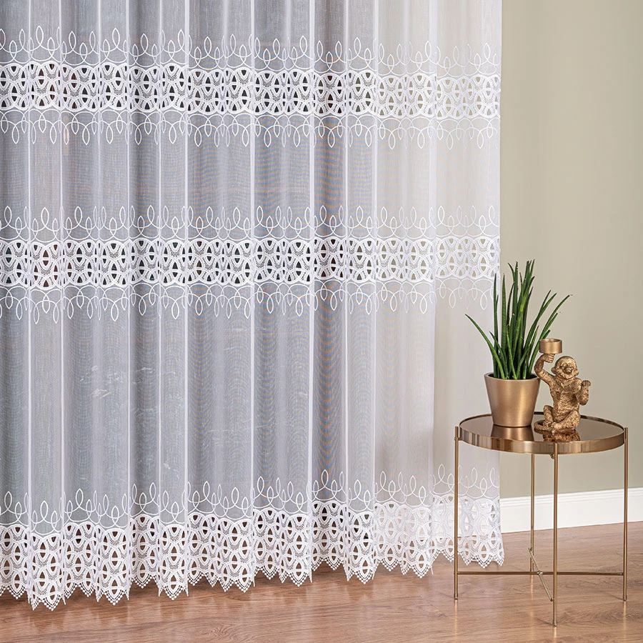Zależy nam na zadowoleniu Klienta, dlatego wybieramy jedynie najwyższej jakości produkty polskich i zagranicznych producentów. Firanka z aplikacją gipiurową ucinana lub szyta na indywidualne zamówienie! Nie jest to produkt gotowy, dlatego nie ma możliwości odstąpienia od umowy (zwrotu, ani wymiany), dlatego prosimy o przemyślane zakupy.