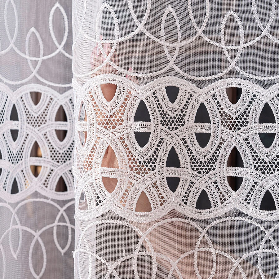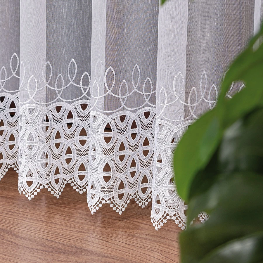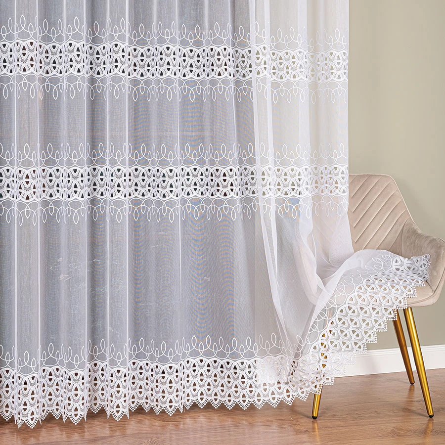 Jeśli szukasz czegoś, co sprawi, że Twoje wnętrze nabierze uroku i elegancji, to ta haftowana firanka z aplikacją gipiurową będzie doskonałym wyborem.