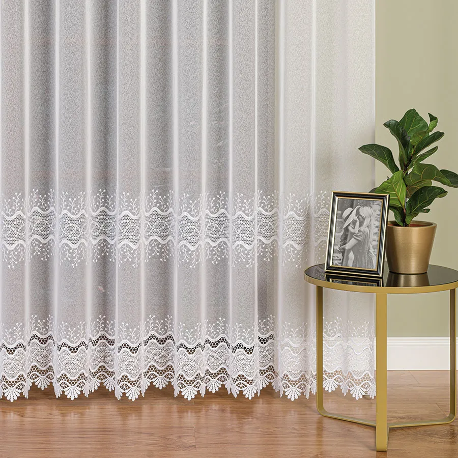 Zależy nam na zadowoleniu Klienta, dlatego wybieramy jedynie najwyższej jakości produkty polskich i zagranicznych producentów. Firanka z aplikacją gipiurową ucinana lub szyta na indywidualne zamówienie! Nie jest to produkt gotowy, dlatego nie ma możliwości odstąpienia od umowy (zwrotu, ani wymiany), dlatego prosimy o przemyślane zakupy.
