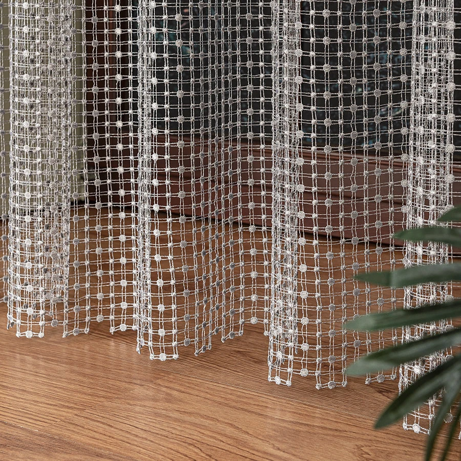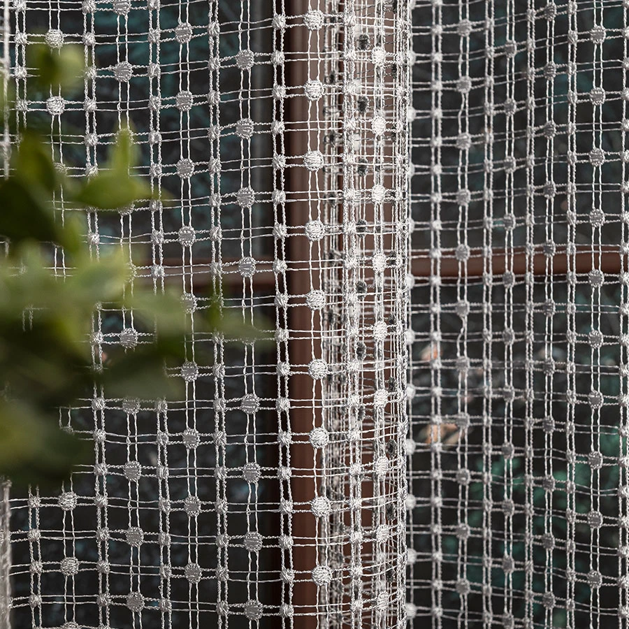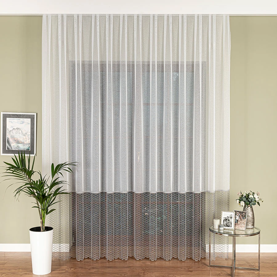 Precyzyjnie wykonana aplikacja na dole firanki sprawia, że pięknie ona opada, dodając wnętrzu lekkości i finezji.