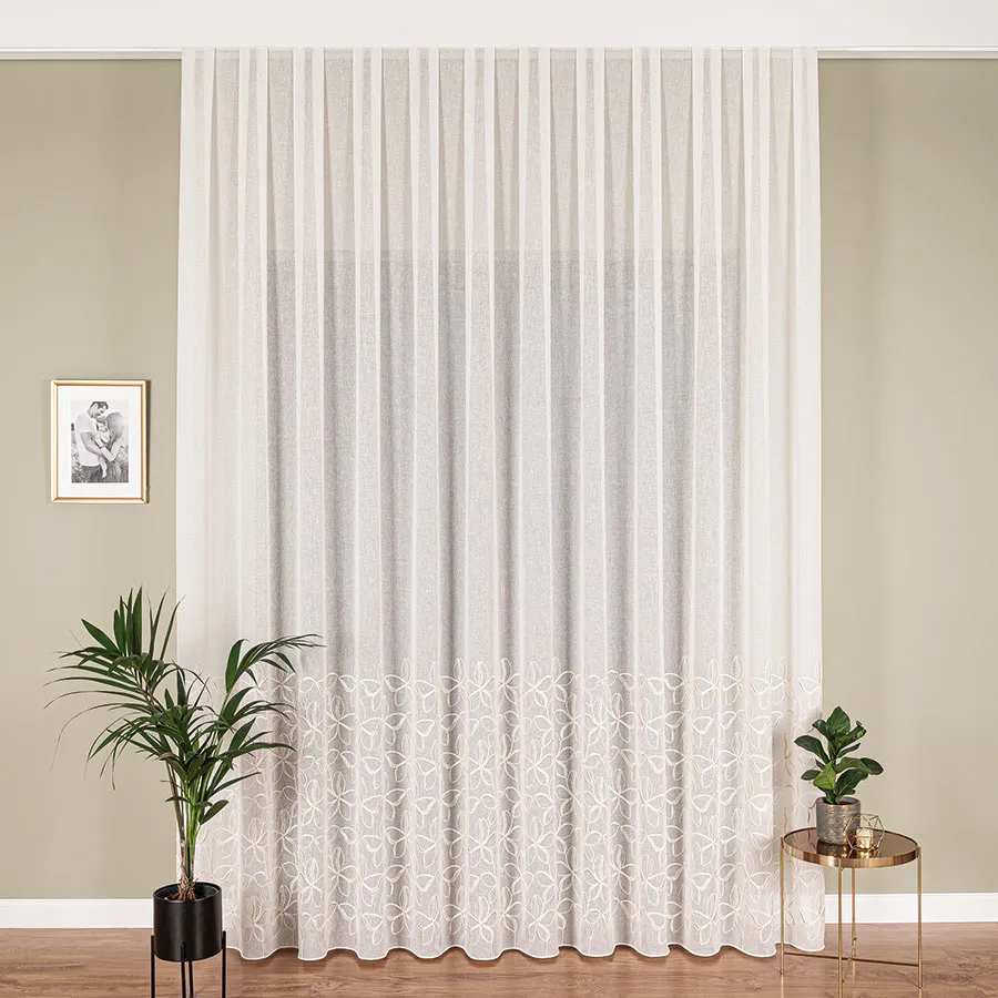 Firanka haftowana o kwiatowym wzorze to elegancki dodatek do każdego wnętrza, który doda mu niepowtarzalnego uroku.