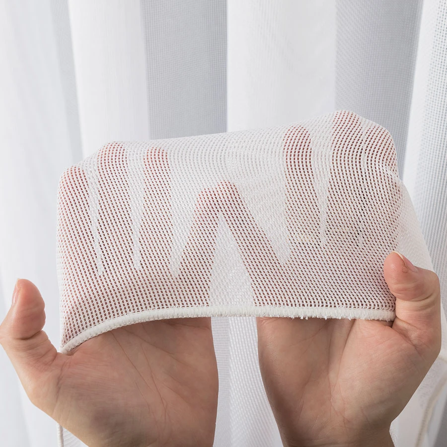 Firanka ZARIA dzięki swojej strukturze oczek, która tworzy gładki wzór, prezentuje się elegancko i nowocześnie.
