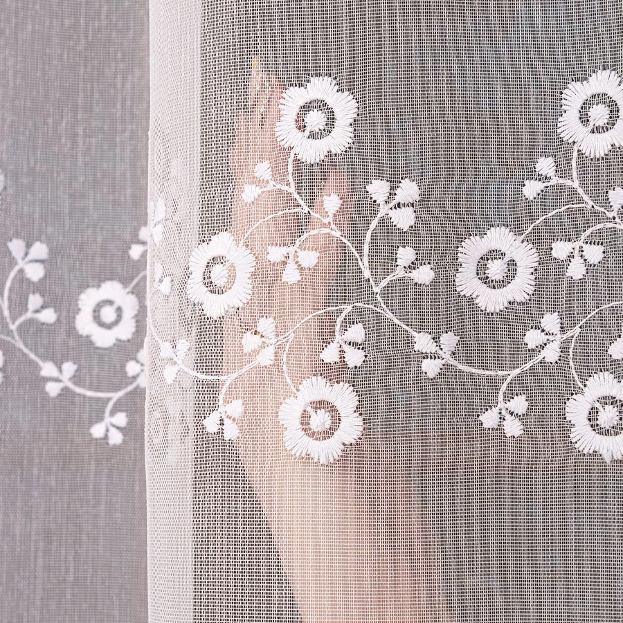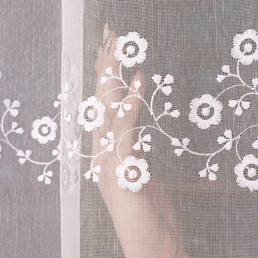 Firanka haftowana z aplikacją gipiury to niezwykle elegancki i gustowny dodatek do każdego wnętrza.