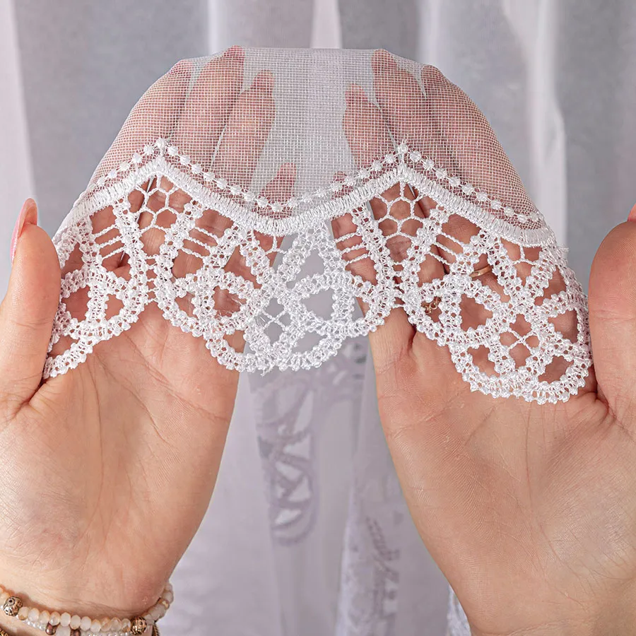 Firanka z aplikacją gipiurową to elegancki dodatek do każdego wnętrza, który nadaje mu wyjątkowego uroku i klasy.