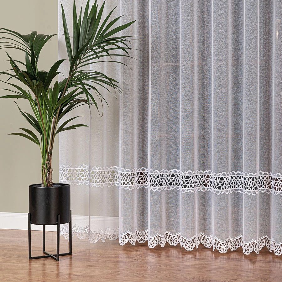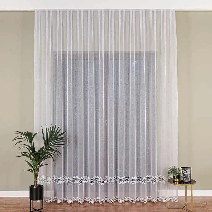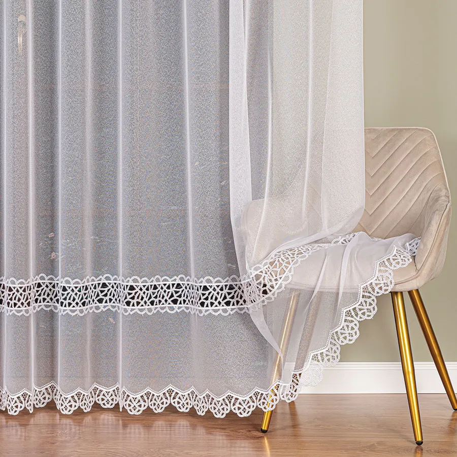 Zależy nam na zadowoleniu Klienta, dlatego wybieramy jedynie najwyższej jakości produkty polskich i zagranicznych producentów. Firanka z aplikacją gipiurową ucinana lub szyta na indywidualne zamówienie! Nie jest to produkt gotowy, dlatego nie ma możliwości odstąpienia od umowy (zwrotu, ani wymiany), dlatego prosimy o przemyślane zakupy.
