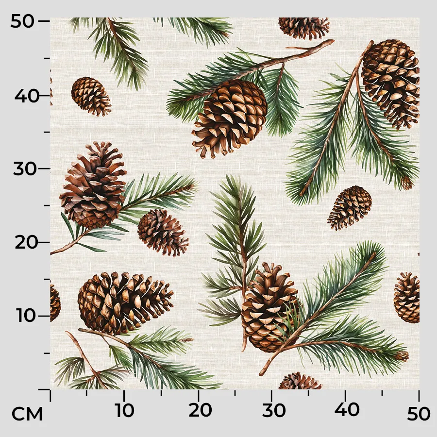 Tkanina dekoracyjna z motywem drukowanych szyszek na wodoodpornym podkładzie to doskonały wybór do wystroju wnętrz. Dzięki wodoodpornej powłoce tkanina jest odporna na zalanie i łatwo utrzymać ją w czystości, co czyni ją praktycznym rozwiązaniem do zastosowania na zasłony, obrusy czy poszewki. Lekko sztywny materiał zapewnia tkaninie elegancki wygląd i sprawia, że dobrze układa się na różnych elementach dekoracyjnych. Umiarkowana przepuszczalność światła pozwala na stworzenie przyjemnej atmosfery w pomieszczeniu, a jednocześnie zapewnia odpowiednią ochronę przed nadmiernym nasłonecznieniem. Dzięki temu tkanina sprawdzi się zarówno w sypialni, salonie czy jadalni, dodając im uroku i charakteru. Drukowane szyszki nadają tkaninie wyjątkowego uroku i sprawiają, że stanie się ona oryginalnym elementem wystroju wnętrz. Jej naturalny motyw doskonale komponuje się z różnymi stylami aranżacji, dodając im subtelności i elegancji.