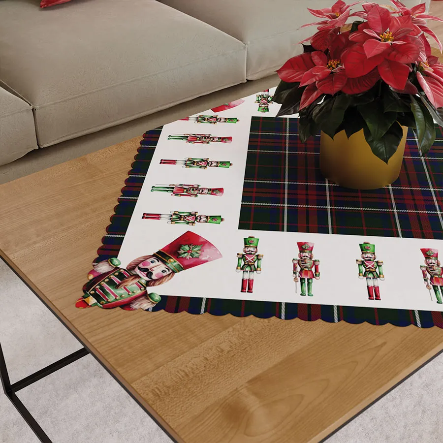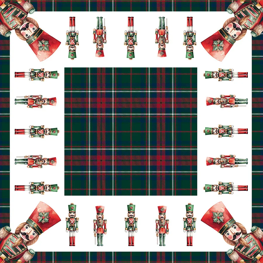 Obrus dekoracyjny o wodoodpornym podkładzie to idealny dodatek do świątecznego stołu. Jego uroczy nadruk w świątecznym klimacie, przedstawiający motyw dziadka do orzechów, dodaje uroku i przytulności każdej kolacji.